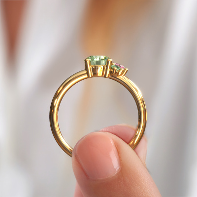Dieser Ring namens Anouk besteht aus 14 Karat Gold und ist mit grüner Labor-Diamant besetzt. Sind Sie auf der Suche nach einem einzigartigen Gold Ring mit moderner Note? Dann könnte dieser Ring zu Ihnen passen. Einfach nach Ihren Wünschen anpassen. Er passt zur zeitgenössischen, modernen Frau. Dieser zierliche Ring ist mit wunderschönen grüner Labor-Diamanten besetzt. Er wurde sorgfältig ausgewählt. Weil Ihr Ring mit nichts als dem atemberaubendsten Edelstein gekrönt werden soll. Unser erfahrener Goldschiede kreiert Ihren Ring in unserem eigenen Studio, wo der grüner Labor-Diamant mit großer Sorgfalt gesetzt wird. Der Ring wird dann perfekt poliert, um einen atemberaubenden Ring zu erhalten. Durch die Kombination modernster Technik mit uralter Handwerkskunst können wir alle Ringe in unserem eigenen Studio anfertigen. Jedes Schmuckstück wird auf Anfrage gefertigt. Das ist vorteilhaft, weil wir Ihnen dadurch einen Preis anbieten können, den Sie nirgendwo anders finden.Unser Team von talentierten, leidenschaftlichen Designern fügt unserer Online-Kollektion täglich neue Ring-Designs hinzu. Unser Ziel dabei ist es, Ihnen eine große Vielfalt an Schmuckstücken anbieten zu können. Bitte zögern Sie nicht, ein Angebot anzufordern, wenn Sie spezielle Wünsche für Ihren Ring haben. Wir garantieren Ihnen ein Angebot, das Sie nicht ablehnen können.Um es einfacher zu machen, bieten wir eine kostenlose 30-tägige Rücksendung.