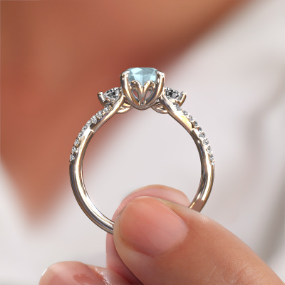 Dieser Ring aus Platin heißt Marilou RND und hat 6.5 mm Aquamarin. Dieser gespaltene Bänder Platin 3-stone Verlobungsring ist ein wahres Kunstwerk! Die Ornamente werden mit viel Geduld und großer Leidenschaft gefertigt. Um diesen Ring mit großer Präzision zu schaffen, erfordert dieses Handwerk ein scharfes Auge und eine geschickte Hand. Eine Herausforderung, die bei unseren erfahrenen Juwelieren ein Feuer entfacht. Die exquisiten Aquamarins sind auf eine besondere Art und Weise gefasst, so dass sie noch mehr hervorstechen. Dies verleiht dem Ring eine noch glamourösere Erscheinung. Der Ring an sich ist schon wegen der Edelsteine einzigartig, die wir speziell für diesen Ring auswählen. Obendrein wählen Sie die Edelmetalle aus, mit denen Ihr einzigartiger Ring für die außergewöhnlichste Frau Ihres Lebens gemacht wird! Jedes Schmuckstück wird nur für Sie persönlich hergestellt, mit Liebe zum Detail und Design.Haben Sie ein bestimmtes Budget? Sie können uns gerne kontaktieren, damit wir Ihre Optionen besprechen können. Wir bieten unsere Verlobungsringe zum garantiert besten Preis, denn wir fertigen sie auf Bestellung. Solche Preise finden Sie nirgendwo anders!Haben Sie irgendwo einen bestimmten Verlobungsring gefunden, den Sie Ihrem Liebsten schenken möchten? Sie können uns gerne sagen, was Sie wollen und wir werden Ihr Design in einen Einzigartigen Fantasie Verlobungsring verwandeln. Sie können die Entwicklungen Ihres Ringdesigns verfolgen, da wir 3D-Zeichnungen verwenden. Das gibt Ihnen eine realistische Vorschau, wie Ihr Design aussehen wird. Sie können auch einen Dummy vorbestellen. Ein Dummy ist ein Kunststoffring, der nach Ihrem Ringdesign gestaltet werden kann. Sie können ihn anprobieren und prüfen, ob seine Breite und Größe für Sie geeignet sind. Wir senden Ihnen gerne ein unverbindliches Angebot zu einem fairen Preis/Leistungsverhältnis. Sie werden in Anbetracht der Qualität des Rings und der Edelsteine überrascht sein.Um es einfacher zu machen, bieten wir eine kostenlose 30-tägige Rücksendung.