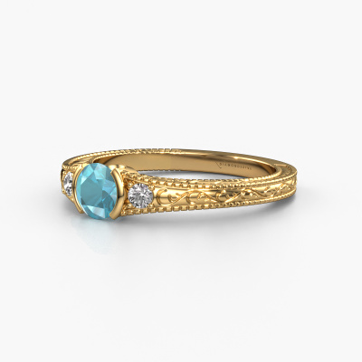 Dieser Verlobungsring aus 14 Karat Gold heißt Anamaria und hat einen 5 mm Blau Topas. Ein außergewöhnlicher, Gold Vintage Ring. Einer, der die Liebe Ihres Lebens mit Sicherheit wie ein Blau Topas erstrahlen lässt! Das hoffen wir zu erreichen. Dieser Vintage Verlobungsring ist mit exquisiten Blau Topas besetzt. Welchen Edelstein Sie aus unserer Auswahl haben möchten, liegt ganz bei Ihnen. Der Edelstein wird mit großer Sorgfalt ausgewählt. Denn wir glauben, dass Ihr Filigrane Verlobungsring nur mit dem schönsten Edelstein gekrönt sein darf. Sehen Sie das auch so? Unser erfahrener Juwelier entwirft Ihren Ring in unserem eigenen Studio, wo der Blau Topas mit großer Präzision eingefasst wird. Der Ring wird dann bearbeitet und poliert, bis er perfekt ist. Nichts als das Beste für die Liebe Ihres Lebens! Jedes Schmuckstück wird von unseren Meister-Goldschmieden in unserem eigenen Studio für Sie gefertigt.Haben Sie ein bestimmtes Budget? Sie können uns gerne kontaktieren, damit wir Ihre Optionen besprechen können. Wir bieten unsere Verlobungsringe zum garantiert besten Preis, denn wir fertigen sie auf Bestellung. Solche Preise finden Sie nirgendwo anders!Unser Team fügt unserer Online-Kollektion täglich neue Designs hinzu. Unsere Designer und Goldschmiede arbeiten zusammen, um das beste Design zu kreieren. Wir bemühen uns, eine vielfältige Kollektion von Schmuckstücken anzubieten. Vielleicht haben Sie ein bestimmtes Design im Sinn. Eines, dass Sie irgendwo gesehen haben. Gerne geben wir Ihnen eine kostenlose Beratung. Wir machen Ihnen ein Angebot, basierend auf einem fairen Preis/Leistungsverhältnis, das Sie verblüffen wird.Um es einfacher zu machen, bieten wir eine kostenlose 30-tägige Rücksendung.