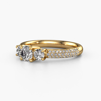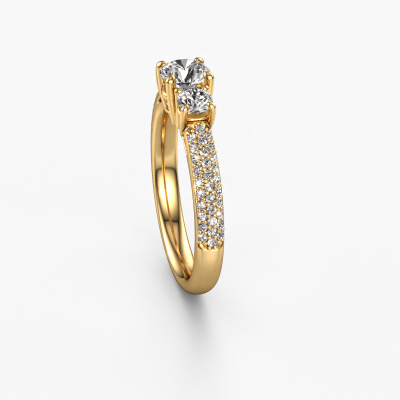 Dieser Ring aus 14 Karat Gold heißt Marielle RND und hat 1.17 crt Diamant. Dieser geschmackvolle 14 Karat Gold 3-stone Verlobungsring ist ein wahres Kunstwerk! Die Ornamente werden mit viel Geduld und großer Leidenschaft gefertigt. Um diesen Ring mit großer Präzision zu schaffen, erfordert dieses Handwerk ein scharfes Auge und eine geschickte Hand. Eine Herausforderung, die bei unseren erfahrenen Juwelieren ein Feuer entfacht. Die exquisiten Diamanten sind auf eine besondere Art und Weise gefasst, so dass sie noch mehr hervorstechen. Dies verleiht dem Ring eine noch glamourösere Erscheinung. Der Ring an sich ist schon wegen der Edelsteine einzigartig, die wir speziell für diesen Ring auswählen. Obendrein wählen Sie die Edelmetalle aus, mit denen Ihr einzigartiger Ring für die außergewöhnlichste Frau Ihres Lebens gemacht wird! Jedes Schmuckstück wird hergestellt mit Leidenschaft und Liebe, von einem unserer Meister-Goldschmiede.Durch die Kombination modernster Technik mit uralter Handwerkskunst können wir alle Verlobungsringe in unserem eigenen Studio anfertigen. Jedes Schmuckstück wird auf Anfrage gefertigt. Das ist vorteilhaft, weil wir Ihnen dadurch einen Preis anbieten können, den Sie nirgendwo anders finden.Unsere Designer und Goldschmiede arbeiten jeden Tag zusammen und versuchen, neue Schmuckstücke zu kreieren. Vielleicht haben Sie irgendwo einen schönen, exklusive Verlobungsring gefunden, nach dem Ihr einzigartiger Ring gestaltet werden kann. Setzen Sie sich mit uns in Verbindung. Wir machen Ihnen ein Angebot, basierend auf einem fairen Preis/Leistungsverhältnis, das Sie begeistern wird.Um es einfacher zu machen, bieten wir eine kostenlose 30-tägige Rücksendung.