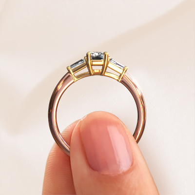 Dieser Ring aus 14 Karat Roségold heißt Kina RAD und hat 0.97 crt Diamant. Dieser graziöse 14 Karat Roségold 3-stone Verlobungsring ist ein wahres Kunstwerk! Die Ornamente werden mit viel Geduld und großer Leidenschaft gefertigt. Um diesen Ring mit großer Präzision zu schaffen, erfordert dieses Handwerk ein scharfes Auge und eine geschickte Hand. Eine Herausforderung, die bei unseren erfahrenen Juwelieren ein Feuer entfacht. Die exquisiten Diamanten sind auf eine besondere Art und Weise gefasst, so dass sie noch mehr hervorstechen. Dies verleiht dem Ring eine noch glamourösere Erscheinung. Der Ring an sich ist schon wegen der Edelsteine einzigartig, die wir speziell für diesen Ring auswählen. Obendrein wählen Sie die Edelmetalle aus, mit denen Ihr einzigartiger Ring für die außergewöhnlichste Frau Ihres Lebens gemacht wird! Jedes Schmuckstück wird nur für Sie persönlich hergestellt, mit Liebe zum Detail und Design.Nach Erhalt Ihrer Bestellung beginnen unsere Goldschmiede mit Leidenschaft den kreativen Prozess und fertigen Ihren Verlobungsring in unserem eigenen Studio. Da wir keine großen Lager haben, werden diese Kosten nicht an Sie weitergegeben. Unsere Preisgestaltung ist der Beweis dafür! Wir bieten Schmuck zum niedrigsten Preis, garantiert.Haben Sie irgendwo einen bestimmten Verlobungsring gefunden, den Sie Ihrem Liebsten schenken möchten? Sie können uns gerne sagen, was Sie wollen und wir werden Ihr Design in einen Einzigartigen einzigartige Verlobungsring verwandeln. Sie können die Entwicklungen Ihres Ringdesigns verfolgen, da wir 3D-Zeichnungen verwenden. Das gibt Ihnen eine realistische Vorschau, wie Ihr Design aussehen wird. Sie können auch einen Dummy vorbestellen. Ein Dummy ist ein Kunststoffring, der nach Ihrem Ringdesign gestaltet werden kann. Sie können ihn anprobieren und prüfen, ob seine Breite und Größe für Sie geeignet sind. Wir senden Ihnen gerne ein unverbindliches Angebot zu einem fairen Preis/Leistungsverhältnis. Sie werden in Anbetracht der Qualität des Rings und der Edelsteine überrascht sein.Um es einfacher zu machen, bieten wir eine kostenlose 30-tägige Rücksendung.