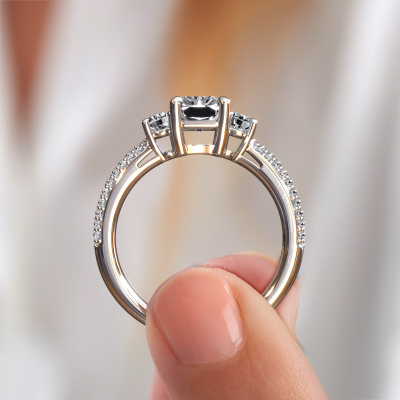 Dieser Ring aus 585 Weißgold heißt Marielle RAD und hat 2.17 crt Diamant. Dieser zierliche 585 Weißgold 3-stone Verlobungsring ist ein wahres Kunstwerk! Die Ornamente werden mit viel Geduld und großer Leidenschaft gefertigt. Um diesen Ring mit großer Präzision zu schaffen, erfordert dieses Handwerk ein scharfes Auge und eine geschickte Hand. Eine Herausforderung, die bei unseren erfahrenen Juwelieren ein Feuer entfacht. Die exquisiten Diamanten sind auf eine besondere Art und Weise gefasst, so dass sie noch mehr hervorstechen. Dies verleiht dem Ring eine noch glamourösere Erscheinung. Der Ring an sich ist schon wegen der Edelsteine einzigartig, die wir speziell für diesen Ring auswählen. Obendrein wählen Sie die Edelmetalle aus, mit denen Ihr einzigartiger Ring für die außergewöhnlichste Frau Ihres Lebens gemacht wird! Jedes Schmuckstück ist um Ihrem Finger Glanz zu verleihen. Jeder Ring wird von unseren Goldschmieden liebevoll von Hand gefertigt.Durch die Kombination modernster Technik mit uralter Handwerkskunst können wir alle Verlobungsringe in unserem eigenen Studio anfertigen. Jedes Schmuckstück wird auf Anfrage gefertigt. Das ist vorteilhaft, weil wir Ihnen dadurch einen Preis anbieten können, den Sie nirgendwo anders finden.Verschiedene Arten von neuen Ringen werden täglich von unserem Team angefertigt. Vielleicht haben Sie irgendwo einen 3-stone Verlobungsring gefunden. Einen, den Sie Ihrem Liebsten schenken möchten. Bitte zögern Sie nicht, unseren Schmuckdesignern Ihre Gedanken und Ihr Design zu zeigen. Wir würden gerne Ihr Design in einen moderne Verlobungsring verwandeln. Sie können die Entwicklungen Ihres Ringdesigns verfolgen, da wir sehr detaillierte 3D-Zeichnungen verwenden. Darüber hinaus können Sie einen Dummy des Designs bestellen. Ein Dummy ist ein Kunststoffring, der nach Ihrem Ringdesign gestaltet werden kann. Sie können ihn anprobieren und prüfen, ob der Verlobungsring Ihren Vorstellungen entspricht. Wir senden Ihnen gerne ein unverbindliches Angebot zu einem fairen Preis/Leistungsverhältnis. Das Angebot wird Sie angesichts der Qualität des Rings und der Edelsteine verblüffen.Um es einfacher zu machen, bieten wir eine kostenlose 30-tägige Rücksendung.