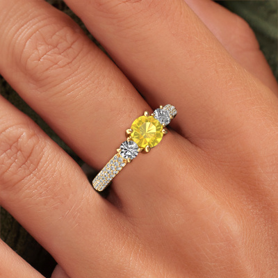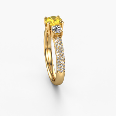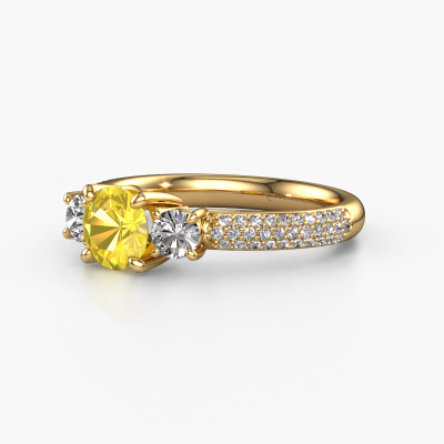 Dieser Ring aus 14 Karat Gold heißt Marielle RND und hat 6 mm Gelb Saphir. Dieser geschmackvolle 14 Karat Gold 3-stone Verlobungsring ist ein wahres Kunstwerk! Die Ornamente werden mit viel Geduld und großer Leidenschaft gefertigt. Um diesen Ring mit großer Präzision zu schaffen, erfordert dieses Handwerk ein scharfes Auge und eine geschickte Hand. Eine Herausforderung, die bei unseren erfahrenen Juwelieren ein Feuer entfacht. Die exquisiten Gelb Saphir sind auf eine besondere Art und Weise gefasst, so dass sie noch mehr hervorstechen. Dies verleiht dem Ring eine noch glamourösere Erscheinung. Der Ring an sich ist schon wegen der Edelsteine einzigartig, die wir speziell für diesen Ring auswählen. Obendrein wählen Sie die Edelmetalle aus, mit denen Ihr einzigartiger Ring für die außergewöhnlichste Frau Ihres Lebens gemacht wird! Jedes Schmuckstück wird hergestellt mit Leidenschaft und Liebe, von einem unserer Meister-Goldschmiede.Durch die Kombination modernster Technik mit uralter Handwerkskunst können wir alle Verlobungsringe in unserem eigenen Studio anfertigen. Jedes Schmuckstück wird auf Anfrage gefertigt. Das ist vorteilhaft, weil wir Ihnen dadurch einen Preis anbieten können, den Sie nirgendwo anders finden.Unsere Designer und Goldschmiede arbeiten jeden Tag zusammen und versuchen, neue Schmuckstücke zu kreieren. Vielleicht haben Sie irgendwo einen schönen, exklusive Verlobungsring gefunden, nach dem Ihr einzigartiger Ring gestaltet werden kann. Setzen Sie sich mit uns in Verbindung. Wir machen Ihnen ein Angebot, basierend auf einem fairen Preis/Leistungsverhältnis, das Sie begeistern wird.Um es einfacher zu machen, bieten wir eine kostenlose 30-tägige Rücksendung.