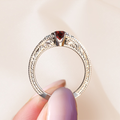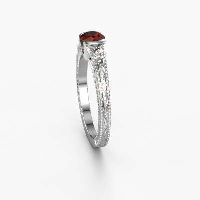 Dieser Verlobungsring aus 14 Karat Weißgold heißt Anamaria und hat einen 5 mm Granat. Ein außergewöhnlicher, Weißgold Vintage Ring. Einer, der die Liebe Ihres Lebens mit Sicherheit wie ein Granat erstrahlen lässt! Das hoffen wir zu erreichen. Dieser Vintage Verlobungsring ist mit exquisiten Granat besetzt. Welchen Edelstein Sie aus unserer Auswahl haben möchten, liegt ganz bei Ihnen. Der Edelstein wird mit großer Sorgfalt ausgewählt. Denn wir glauben, dass Ihr Filigrane Verlobungsring nur mit dem schönsten Edelstein gekrönt sein darf. Sehen Sie das auch so? Unser erfahrener Juwelier entwirft Ihren Ring in unserem eigenen Studio, wo der Granat mit großer Präzision eingefasst wird. Der Ring wird dann bearbeitet und poliert, bis er perfekt ist. Nichts als das Beste für die Liebe Ihres Lebens! Jedes Schmuckstück wird von unseren Meister-Goldschmieden in unserem eigenen Studio für Sie gefertigt.Haben Sie ein bestimmtes Budget? Sie können uns gerne kontaktieren, damit wir Ihre Optionen besprechen können. Wir bieten unsere Verlobungsringe zum garantiert besten Preis, denn wir fertigen sie auf Bestellung. Solche Preise finden Sie nirgendwo anders!Unser Team fügt unserer Online-Kollektion täglich neue Designs hinzu. Unsere Designer und Goldschmiede arbeiten zusammen, um das beste Design zu kreieren. Wir bemühen uns, eine vielfältige Kollektion von Schmuckstücken anzubieten. Vielleicht haben Sie ein bestimmtes Design im Sinn. Eines, dass Sie irgendwo gesehen haben. Gerne geben wir Ihnen eine kostenlose Beratung. Wir machen Ihnen ein Angebot, basierend auf einem fairen Preis/Leistungsverhältnis, das Sie verblüffen wird.Um es einfacher zu machen, bieten wir eine kostenlose 30-tägige Rücksendung.