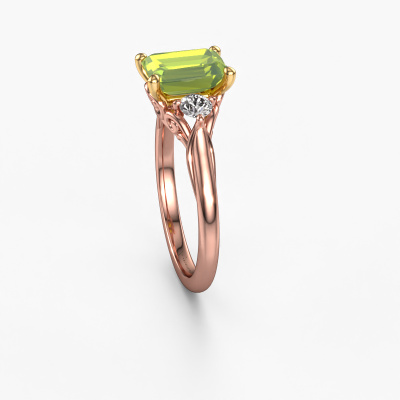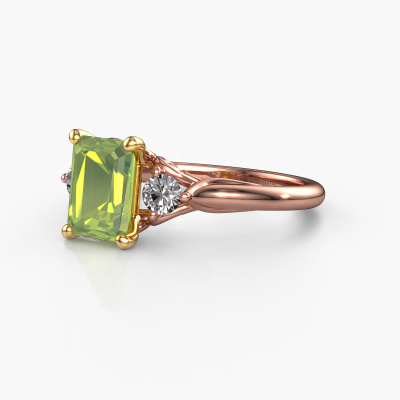 Dieser Ring aus 14 Karat Roségold heißt Laurian EME und hat 8x6 mm Peridot. Dieser besondere 14 Karat Roségold 3-stone Verlobungsring ist ein wahres Kunstwerk! Die Ornamente werden mit viel Geduld und großer Leidenschaft gefertigt. Um diesen Ring mit großer Präzision zu schaffen, erfordert dieses Handwerk ein scharfes Auge und eine geschickte Hand. Eine Herausforderung, die bei unseren erfahrenen Juwelieren ein Feuer entfacht. Die exquisiten Peridot sind auf eine besondere Art und Weise gefasst, so dass sie noch mehr hervorstechen. Dies verleiht dem Ring eine noch glamourösere Erscheinung. Der Ring an sich ist schon wegen der Edelsteine einzigartig, die wir speziell für diesen Ring auswählen. Obendrein wählen Sie die Edelmetalle aus, mit denen Ihr einzigartiger Ring für die außergewöhnlichste Frau Ihres Lebens gemacht wird! Jedes Schmuckstück ist einzigartig in jeder Hinsicht! Einfach nach Ihren Wünschen anzupassen.Durch die Kombination modernster Technik mit uralter Handwerkskunst können wir alle Verlobungsringe in unserem eigenen Studio anfertigen. Jedes Schmuckstück wird auf Anfrage gefertigt. Das ist vorteilhaft, weil wir Ihnen dadurch einen Preis anbieten können, den Sie nirgendwo anders finden.Unser Team fügt unserer Online-Kollektion täglich neue Designs hinzu. Unsere Designer und Goldschmiede arbeiten zusammen, um das beste Design zu kreieren. Wir bemühen uns, eine vielfältige Kollektion von Schmuckstücken anzubieten. Vielleicht haben Sie ein bestimmtes Design im Sinn. Eines, dass Sie irgendwo gesehen haben. Gerne geben wir Ihnen eine kostenlose Beratung. Wir machen Ihnen ein Angebot, basierend auf einem fairen Preis/Leistungsverhältnis, das Sie verblüffen wird.Um es einfacher zu machen, bieten wir eine kostenlose 30-tägige Rücksendung.