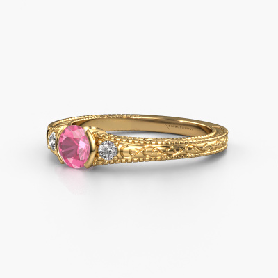 Dieser Verlobungsring aus 14 Karat Gold heißt Anamaria und hat einen 5 mm Pink Saphir. Ein außergewöhnlicher, Gold Vintage Ring. Einer, der die Liebe Ihres Lebens mit Sicherheit wie ein Pink Saphir erstrahlen lässt! Das hoffen wir zu erreichen. Dieser Vintage Verlobungsring ist mit exquisiten Pink Saphir besetzt. Welchen Edelstein Sie aus unserer Auswahl haben möchten, liegt ganz bei Ihnen. Der Edelstein wird mit großer Sorgfalt ausgewählt. Denn wir glauben, dass Ihr Filigrane Verlobungsring nur mit dem schönsten Edelstein gekrönt sein darf. Sehen Sie das auch so? Unser erfahrener Juwelier entwirft Ihren Ring in unserem eigenen Studio, wo der Pink Saphir mit großer Präzision eingefasst wird. Der Ring wird dann bearbeitet und poliert, bis er perfekt ist. Nichts als das Beste für die Liebe Ihres Lebens! Jedes Schmuckstück wird von unseren Meister-Goldschmieden in unserem eigenen Studio für Sie gefertigt.Haben Sie ein bestimmtes Budget? Sie können uns gerne kontaktieren, damit wir Ihre Optionen besprechen können. Wir bieten unsere Verlobungsringe zum garantiert besten Preis, denn wir fertigen sie auf Bestellung. Solche Preise finden Sie nirgendwo anders!Unser Team fügt unserer Online-Kollektion täglich neue Designs hinzu. Unsere Designer und Goldschmiede arbeiten zusammen, um das beste Design zu kreieren. Wir bemühen uns, eine vielfältige Kollektion von Schmuckstücken anzubieten. Vielleicht haben Sie ein bestimmtes Design im Sinn. Eines, dass Sie irgendwo gesehen haben. Gerne geben wir Ihnen eine kostenlose Beratung. Wir machen Ihnen ein Angebot, basierend auf einem fairen Preis/Leistungsverhältnis, das Sie verblüffen wird.Um es einfacher zu machen, bieten wir eine kostenlose 30-tägige Rücksendung.