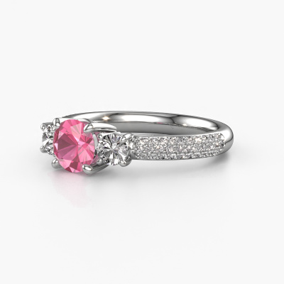 Dieser Ring aus Platin heißt Marielle RND und hat 6 mm Pink Saphir. Dieser geschmackvolle Platin 3-stone Verlobungsring ist ein wahres Kunstwerk! Die Ornamente werden mit viel Geduld und großer Leidenschaft gefertigt. Um diesen Ring mit großer Präzision zu schaffen, erfordert dieses Handwerk ein scharfes Auge und eine geschickte Hand. Eine Herausforderung, die bei unseren erfahrenen Juwelieren ein Feuer entfacht. Die exquisiten Pink Saphir sind auf eine besondere Art und Weise gefasst, so dass sie noch mehr hervorstechen. Dies verleiht dem Ring eine noch glamourösere Erscheinung. Der Ring an sich ist schon wegen der Edelsteine einzigartig, die wir speziell für diesen Ring auswählen. Obendrein wählen Sie die Edelmetalle aus, mit denen Ihr einzigartiger Ring für die außergewöhnlichste Frau Ihres Lebens gemacht wird! Jedes Schmuckstück wird hergestellt mit Leidenschaft und Liebe, von einem unserer Meister-Goldschmiede.Durch die Kombination modernster Technik mit uralter Handwerkskunst können wir alle Verlobungsringe in unserem eigenen Studio anfertigen. Jedes Schmuckstück wird auf Anfrage gefertigt. Das ist vorteilhaft, weil wir Ihnen dadurch einen Preis anbieten können, den Sie nirgendwo anders finden.Unsere Designer und Goldschmiede arbeiten jeden Tag zusammen und versuchen, neue Schmuckstücke zu kreieren. Vielleicht haben Sie irgendwo einen schönen, exklusive Verlobungsring gefunden, nach dem Ihr einzigartiger Ring gestaltet werden kann. Setzen Sie sich mit uns in Verbindung. Wir machen Ihnen ein Angebot, basierend auf einem fairen Preis/Leistungsverhältnis, das Sie begeistern wird.Um es einfacher zu machen, bieten wir eine kostenlose 30-tägige Rücksendung.