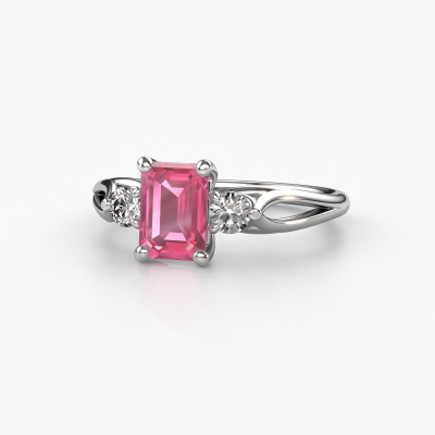 Dieser Ring aus Platin heißt Amie EME und hat 7x5 mm Pink Saphir. Dieser geschmackvolle Platin 3-stone Verlobungsring ist ein wahres Kunstwerk! Die Ornamente werden mit viel Geduld und großer Leidenschaft gefertigt. Um diesen Ring mit großer Präzision zu schaffen, erfordert dieses Handwerk ein scharfes Auge und eine geschickte Hand. Eine Herausforderung, die bei unseren erfahrenen Juwelieren ein Feuer entfacht. Die exquisiten Pink Saphir sind auf eine besondere Art und Weise gefasst, so dass sie noch mehr hervorstechen. Dies verleiht dem Ring eine noch glamourösere Erscheinung. Der Ring an sich ist schon wegen der Edelsteine einzigartig, die wir speziell für diesen Ring auswählen. Obendrein wählen Sie die Edelmetalle aus, mit denen Ihr einzigartiger Ring für die außergewöhnlichste Frau Ihres Lebens gemacht wird! Jedes Schmuckstück lässt Ihren Finger erstrahlen. Ihr Ring ist mit Liebe von unseren Goldschmieden handgefertigt.Haben Sie ein bestimmtes Budget? Sie können uns gerne kontaktieren, damit wir Ihre Optionen besprechen können. Wir bieten unsere Verlobungsringe zum garantiert besten Preis, denn wir fertigen sie auf Bestellung. Solche Preise finden Sie nirgendwo anders!Unser Team fügt unserer Online-Kollektion täglich neue Designs hinzu. Unsere Designer und Goldschmiede arbeiten zusammen, um das beste Design zu kreieren. Wir bemühen uns, eine vielfältige Kollektion von Schmuckstücken anzubieten. Vielleicht haben Sie ein bestimmtes Design im Sinn. Eines, dass Sie irgendwo gesehen haben. Gerne geben wir Ihnen eine kostenlose Beratung. Wir machen Ihnen ein Angebot, basierend auf einem fairen Preis/Leistungsverhältnis, das Sie verblüffen wird.Um es einfacher zu machen, bieten wir eine kostenlose 30-tägige Rücksendung.