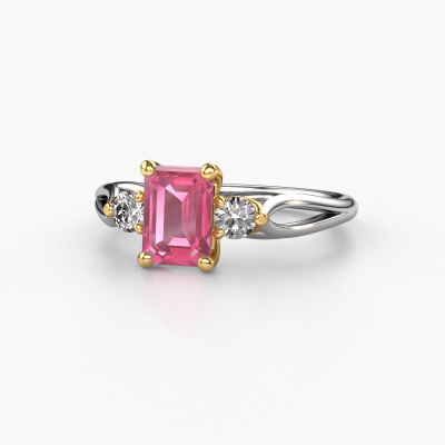 Dieser Ring aus 14 Karat Weißgold heißt Amie EME und hat 7x5 mm Pink Saphir. Dieser geschmackvolle 14 Karat Weißgold 3-stone Verlobungsring ist ein wahres Kunstwerk! Die Ornamente werden mit viel Geduld und großer Leidenschaft gefertigt. Um diesen Ring mit großer Präzision zu schaffen, erfordert dieses Handwerk ein scharfes Auge und eine geschickte Hand. Eine Herausforderung, die bei unseren erfahrenen Juwelieren ein Feuer entfacht. Die exquisiten Pink Saphir sind auf eine besondere Art und Weise gefasst, so dass sie noch mehr hervorstechen. Dies verleiht dem Ring eine noch glamourösere Erscheinung. Der Ring an sich ist schon wegen der Edelsteine einzigartig, die wir speziell für diesen Ring auswählen. Obendrein wählen Sie die Edelmetalle aus, mit denen Ihr einzigartiger Ring für die außergewöhnlichste Frau Ihres Lebens gemacht wird! Jedes Schmuckstück lässt Ihren Finger erstrahlen. Ihr Ring ist mit Liebe von unseren Goldschmieden handgefertigt.Haben Sie ein bestimmtes Budget? Sie können uns gerne kontaktieren, damit wir Ihre Optionen besprechen können. Wir bieten unsere Verlobungsringe zum garantiert besten Preis, denn wir fertigen sie auf Bestellung. Solche Preise finden Sie nirgendwo anders!Unser Team fügt unserer Online-Kollektion täglich neue Designs hinzu. Unsere Designer und Goldschmiede arbeiten zusammen, um das beste Design zu kreieren. Wir bemühen uns, eine vielfältige Kollektion von Schmuckstücken anzubieten. Vielleicht haben Sie ein bestimmtes Design im Sinn. Eines, dass Sie irgendwo gesehen haben. Gerne geben wir Ihnen eine kostenlose Beratung. Wir machen Ihnen ein Angebot, basierend auf einem fairen Preis/Leistungsverhältnis, das Sie verblüffen wird.Um es einfacher zu machen, bieten wir eine kostenlose 30-tägige Rücksendung.