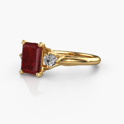 Dieser Ring aus 14 Karat Gold heißt Laurian EME und hat 8x6 mm Rubin. Dieser besondere 14 Karat Gold 3-stone Verlobungsring ist ein wahres Kunstwerk! Die Ornamente werden mit viel Geduld und großer Leidenschaft gefertigt. Um diesen Ring mit großer Präzision zu schaffen, erfordert dieses Handwerk ein scharfes Auge und eine geschickte Hand. Eine Herausforderung, die bei unseren erfahrenen Juwelieren ein Feuer entfacht. Die exquisiten Rubin sind auf eine besondere Art und Weise gefasst, so dass sie noch mehr hervorstechen. Dies verleiht dem Ring eine noch glamourösere Erscheinung. Der Ring an sich ist schon wegen der Edelsteine einzigartig, die wir speziell für diesen Ring auswählen. Obendrein wählen Sie die Edelmetalle aus, mit denen Ihr einzigartiger Ring für die außergewöhnlichste Frau Ihres Lebens gemacht wird! Jedes Schmuckstück ist einzigartig in jeder Hinsicht! Einfach nach Ihren Wünschen anzupassen.Durch die Kombination modernster Technik mit uralter Handwerkskunst können wir alle Verlobungsringe in unserem eigenen Studio anfertigen. Jedes Schmuckstück wird auf Anfrage gefertigt. Das ist vorteilhaft, weil wir Ihnen dadurch einen Preis anbieten können, den Sie nirgendwo anders finden.Unser Team fügt unserer Online-Kollektion täglich neue Designs hinzu. Unsere Designer und Goldschmiede arbeiten zusammen, um das beste Design zu kreieren. Wir bemühen uns, eine vielfältige Kollektion von Schmuckstücken anzubieten. Vielleicht haben Sie ein bestimmtes Design im Sinn. Eines, dass Sie irgendwo gesehen haben. Gerne geben wir Ihnen eine kostenlose Beratung. Wir machen Ihnen ein Angebot, basierend auf einem fairen Preis/Leistungsverhältnis, das Sie verblüffen wird.Um es einfacher zu machen, bieten wir eine kostenlose 30-tägige Rücksendung.