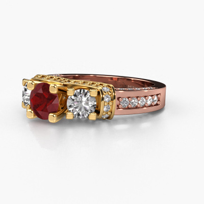 Dieser Ring aus 14 Karat Roségold heißt Phileine und hat 5 mm Rubin. Dieser gewagte 14 Karat Roségold 3-stone Verlobungsring ist ein wahres Kunstwerk! Die Ornamente werden mit viel Geduld und großer Leidenschaft gefertigt. Um diesen Ring mit großer Präzision zu schaffen, erfordert dieses Handwerk ein scharfes Auge und eine geschickte Hand. Eine Herausforderung, die bei unseren erfahrenen Juwelieren ein Feuer entfacht. Die exquisiten Rubin sind auf eine besondere Art und Weise gefasst, so dass sie noch mehr hervorstechen. Dies verleiht dem Ring eine noch glamourösere Erscheinung. Der Ring an sich ist schon wegen der Edelsteine einzigartig, die wir speziell für diesen Ring auswählen. Obendrein wählen Sie die Edelmetalle aus, mit denen Ihr einzigartiger Ring für die außergewöhnlichste Frau Ihres Lebens gemacht wird! Jedes Schmuckstück wird hergestellt mit Leidenschaft und Liebe, von einem unserer Meister-Goldschmiede.Nach Erhalt Ihrer Bestellung beginnen unsere Goldschmiede mit Leidenschaft den kreativen Prozess und fertigen Ihren Verlobungsring in unserem eigenen Studio. Da wir keine großen Lager haben, werden diese Kosten nicht an Sie weitergegeben. Unsere Preisgestaltung ist der Beweis dafür! Wir bieten Schmuck zum niedrigsten Preis, garantiert.Verschiedene Arten von neuen Ringen werden täglich von unserem Team angefertigt. Vielleicht haben Sie irgendwo einen 3-stone Verlobungsring gefunden. Einen, den Sie Ihrem Liebsten schenken möchten. Bitte zögern Sie nicht, unseren Schmuckdesignern Ihre Gedanken und Ihr Design zu zeigen. Wir würden gerne Ihr Design in einen exklusive Verlobungsring verwandeln. Sie können die Entwicklungen Ihres Ringdesigns verfolgen, da wir sehr detaillierte 3D-Zeichnungen verwenden. Darüber hinaus können Sie einen Dummy des Designs bestellen. Ein Dummy ist ein Kunststoffring, der nach Ihrem Ringdesign gestaltet werden kann. Sie können ihn anprobieren und prüfen, ob der Verlobungsring Ihren Vorstellungen entspricht. Wir senden Ihnen gerne ein unverbindliches Angebot zu einem fairen Preis/Leistungsverhältnis. Das Angebot wird Sie angesichts der Qualität des Rings und der Edelsteine verblüffen.Um es einfacher zu machen, bieten wir eine kostenlose 30-tägige Rücksendung.