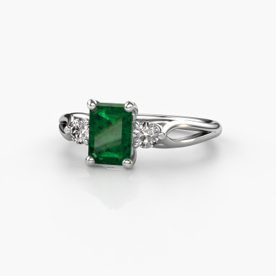 Dieser Ring aus Platin heißt Amie EME und hat 7x5 mm Smaragd. Dieser geschmackvolle Platin 3-stone Verlobungsring ist ein wahres Kunstwerk! Die Ornamente werden mit viel Geduld und großer Leidenschaft gefertigt. Um diesen Ring mit großer Präzision zu schaffen, erfordert dieses Handwerk ein scharfes Auge und eine geschickte Hand. Eine Herausforderung, die bei unseren erfahrenen Juwelieren ein Feuer entfacht. Die exquisiten Smaragd sind auf eine besondere Art und Weise gefasst, so dass sie noch mehr hervorstechen. Dies verleiht dem Ring eine noch glamourösere Erscheinung. Der Ring an sich ist schon wegen der Edelsteine einzigartig, die wir speziell für diesen Ring auswählen. Obendrein wählen Sie die Edelmetalle aus, mit denen Ihr einzigartiger Ring für die außergewöhnlichste Frau Ihres Lebens gemacht wird! Jedes Schmuckstück lässt Ihren Finger erstrahlen. Ihr Ring ist mit Liebe von unseren Goldschmieden handgefertigt.Haben Sie ein bestimmtes Budget? Sie können uns gerne kontaktieren, damit wir Ihre Optionen besprechen können. Wir bieten unsere Verlobungsringe zum garantiert besten Preis, denn wir fertigen sie auf Bestellung. Solche Preise finden Sie nirgendwo anders!Unser Team fügt unserer Online-Kollektion täglich neue Designs hinzu. Unsere Designer und Goldschmiede arbeiten zusammen, um das beste Design zu kreieren. Wir bemühen uns, eine vielfältige Kollektion von Schmuckstücken anzubieten. Vielleicht haben Sie ein bestimmtes Design im Sinn. Eines, dass Sie irgendwo gesehen haben. Gerne geben wir Ihnen eine kostenlose Beratung. Wir machen Ihnen ein Angebot, basierend auf einem fairen Preis/Leistungsverhältnis, das Sie verblüffen wird.Um es einfacher zu machen, bieten wir eine kostenlose 30-tägige Rücksendung.