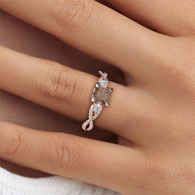 Dieser verdreht Verlobungsring aus 14 Karat Roségold heißt Marilou ASC und hat 1.360 crt Braun Diamant. Ist Ihre Freundin von Vintage begeistert? Dann wird dieser Roségold Verlobungsring sicherlich perfekt zu ihrem Stil passen. Ein trendiger Ring mit einem Hauch von klassischem Schmuck. Ein wirklich atemberaubendes, romantisches Design! Vor allem, wenn Sie den Ring nach ihren Wünschen anpassen. Dieser Luxus 3-stone Verlobungsring ist mit atemberaubenden Braune Diamanten besetzt. Wie Sie sehen können, sind Sie der Boss bei der Auswahl des Edelsteins, der am besten zu Ihrer Freundin passt. Jeder Edelstein wird sorgfältig von unseren Händlern ausgewählt, die auf der ganzen Welt verteilt sind. Nichts als die besten Edelsteine für unseren erfahrenen Juwelier! Schließlich ist es seine Krönung! Jedes Schmuckstück wird von unseren Meister-Goldschmieden in unserem eigenen Studio für Sie gefertigt.Durch die Kombination modernster Technik mit uralter Handwerkskunst können wir alle Verlobungsringe in unserem eigenen Studio anfertigen. Jedes Schmuckstück wird auf Anfrage gefertigt. Das ist vorteilhaft, weil wir Ihnen dadurch einen Preis anbieten können, den Sie nirgendwo anders finden.Unsere Designer und Goldschmiede arbeiten jeden Tag zusammen und versuchen, neue Schmuckstücke zu kreieren. Vielleicht haben Sie irgendwo einen schönen, Luxus Verlobungsring gefunden, nach dem Ihr einzigartiger Ring gestaltet werden kann. Setzen Sie sich mit uns in Verbindung. Wir machen Ihnen ein Angebot, basierend auf einem fairen Preis/Leistungsverhältnis, das Sie begeistern wird.Um es einfacher zu machen, bieten wir eine kostenlose 30-tägige Rücksendung.