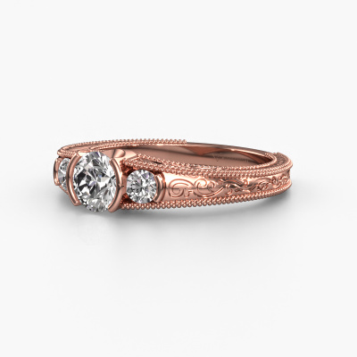 Dieser Filigrane Verlobungsring aus 14 Karat Roségold heißt Tasia und hat 0.80 crt Diamant. Ist Ihre Freundin von Vintage begeistert? Dann wird dieser Roségold Verlobungsring sicherlich perfekt zu ihrem Stil passen. Ein trendiger Ring mit einem Hauch von klassischem Schmuck. Ein wirklich atemberaubendes, romantisches Design! Vor allem, wenn Sie den Ring nach ihren Wünschen anpassen. Dieser Vintage 3-stone Verlobungsring ist mit atemberaubenden Diamanten besetzt. Wie Sie sehen können, sind Sie der Boss bei der Auswahl des Edelsteins, der am besten zu Ihrer Freundin passt. Jeder Edelstein wird sorgfältig von unseren Händlern ausgewählt, die auf der ganzen Welt verteilt sind. Nichts als die besten Edelsteine für unseren erfahrenen Juwelier! Schließlich ist es seine Krönung! Jedes Schmuckstück wird hergestellt mit Leidenschaft und Liebe, von einem unserer Meister-Goldschmiede.Durch die Kombination modernster Technik mit uralter Handwerkskunst können wir alle Verlobungsringe in unserem eigenen Studio anfertigen. Jedes Schmuckstück wird auf Anfrage gefertigt. Das ist vorteilhaft, weil wir Ihnen dadurch einen Preis anbieten können, den Sie nirgendwo anders finden.Unser Team fügt unserer Online-Kollektion täglich neue Designs hinzu. Unsere Designer und Goldschmiede arbeiten zusammen, um das beste Design zu kreieren. Wir bemühen uns, eine vielfältige Kollektion von Schmuckstücken anzubieten. Vielleicht haben Sie ein bestimmtes Design im Sinn. Eines, dass Sie irgendwo gesehen haben. Gerne geben wir Ihnen eine kostenlose Beratung. Wir machen Ihnen ein Angebot, basierend auf einem fairen Preis/Leistungsverhältnis, das Sie verblüffen wird.Um es einfacher zu machen, bieten wir eine kostenlose 30-tägige Rücksendung.