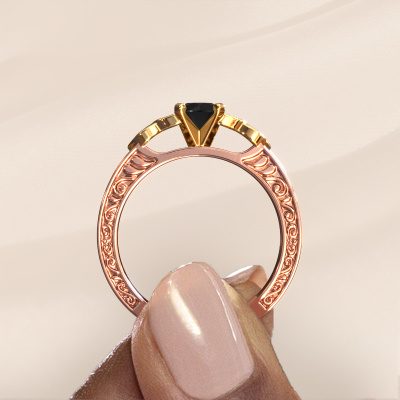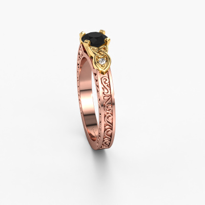 Dieser ajour Verlobungsring aus 14 Karat Roségold heißt Gillian und hat 0.62 crt Schwarz Diamant. Ist Ihre Freundin von Vintage begeistert? Dann wird dieser Roségold Verlobungsring sicherlich perfekt zu ihrem Stil passen. Ein trendiger Ring mit einem Hauch von klassischem Schmuck. Ein wirklich atemberaubendes, romantisches Design! Vor allem, wenn Sie den Ring nach ihren Wünschen anpassen. Dieser Vintage 3-stone Verlobungsring ist mit atemberaubenden Schwarze Diamanten besetzt. Wie Sie sehen können, sind Sie der Boss bei der Auswahl des Edelsteins, der am besten zu Ihrer Freundin passt. Jeder Edelstein wird sorgfältig von unseren Händlern ausgewählt, die auf der ganzen Welt verteilt sind. Nichts als die besten Edelsteine für unseren erfahrenen Juwelier! Schließlich ist es seine Krönung! Jedes Schmuckstück wird nur für Sie persönlich hergestellt, mit Liebe zum Detail und Design.Nach Erhalt Ihrer Bestellung beginnen unsere Goldschmiede mit Leidenschaft den kreativen Prozess und fertigen Ihren Verlobungsring in unserem eigenen Studio. Da wir keine großen Lager haben, werden diese Kosten nicht an Sie weitergegeben. Unsere Preisgestaltung ist der Beweis dafür! Wir bieten Schmuck zum niedrigsten Preis, garantiert.Verschiedene Arten von neuen Ringen werden täglich von unserem Team angefertigt. Vielleicht haben Sie irgendwo einen 3-stone Verlobungsring gefunden. Einen, den Sie Ihrem Liebsten schenken möchten. Bitte zögern Sie nicht, unseren Schmuckdesignern Ihre Gedanken und Ihr Design zu zeigen. Wir würden gerne Ihr Design in einen Vintage Verlobungsring verwandeln. Sie können die Entwicklungen Ihres Ringdesigns verfolgen, da wir sehr detaillierte 3D-Zeichnungen verwenden. Darüber hinaus können Sie einen Dummy des Designs bestellen. Ein Dummy ist ein Kunststoffring, der nach Ihrem Ringdesign gestaltet werden kann. Sie können ihn anprobieren und prüfen, ob der Verlobungsring Ihren Vorstellungen entspricht. Wir senden Ihnen gerne ein unverbindliches Angebot zu einem fairen Preis/Leistungsverhältnis. Das Angebot wird Sie angesichts der Qualität des Rings und der Edelsteine verblüffen.Um es einfacher zu machen, bieten wir eine kostenlose 30-tägige Rücksendung.