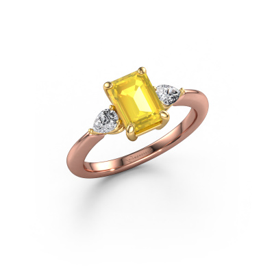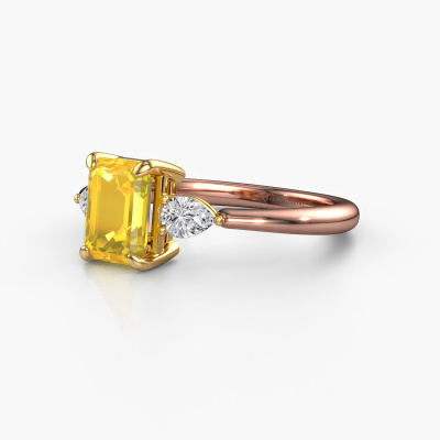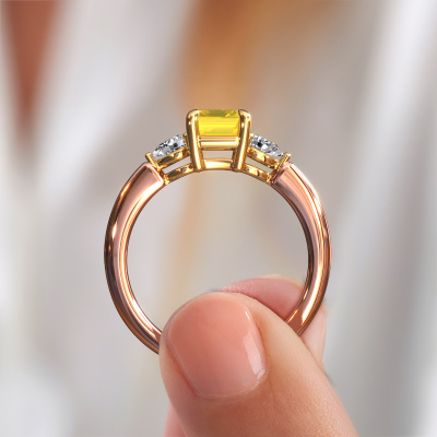 Dieser geschmackvolle Verlobungsring aus 14 Karat Roségold mit 7.5x5.5 mm Gelb Saphir heißt Chanou EME. Für Sie gibt es nur eine Person in Ihrem Leben, die in einer Menschenmenge auffällt. Nur eine, die Ihr Herz höherschlagen lässt. Ein wahres Juwel! Sie verdient vor allem ein besonderes Geschenk. Ein einzigartiges, maßgefertigtes Schmuckstück, das allein zu ihren Ehren angefertigt wurde. Wir glauben, dass dieser Ring perfekt für Ihren besonderen Moment ist. Jedes Detail dieses exklusiven, Roségold 3-stone Verlobungsring wird von Hand ausgewählt, bearbeitet und poliert - von unserem erfahrenen Juwelier in unserem eigenen Studio. Wir streben nach dem perfekten Design und der Zusammensetzung des Rings, damit er die einzigartigen Eigenschaften unserer Gelb Saphir unterstreicht und sie noch heller erstrahlen lässt. Es braucht viel Präzision, aber am Ende zahlt es sich wegen der Schönheit des Rings aus. Und das ist unser Hauptziel. Das ist es, was uns begeistert. Das Besondere an unserem Konfigurator ist dass Sie selbst einem Schmuckstück zusammenstellen können zu einem eigenen persönlichen Schmuckstück. Dieser 3-stone Verlobungsring ist gefertigt in der Edelmetall Kombination Roségold mit Gold, aber Sie können also auch wählen aus anderen Farben. Jedes Schmuckstück wird von unseren Meister-Goldschmieden in unserem eigenen Studio für Sie gefertigt.. Durch die Kombination modernster Technik mit uralter Handwerkskunst können wir alle Verlobungsringe in unserem eigenen Studio anfertigen. Jedes Schmuckstück wird auf Anfrage gefertigt. Das ist vorteilhaft, weil wir Ihnen dadurch einen Preis anbieten können, den Sie nirgendwo anders finden.Unsere Designer und Goldschmiede arbeiten jeden Tag zusammen und versuchen, neue Schmuckstücke zu kreieren. Vielleicht haben Sie irgendwo einen schönen, einzigartige Verlobungsring gefunden, nach dem Ihr einzigartiger Ring gestaltet werden kann. Setzen Sie sich mit uns in Verbindung. Wir machen Ihnen ein Angebot, basierend auf einem fairen Preis/Leistungsverhältnis, das Sie begeistern wird.Um es einfacher zu machen, bieten wir eine kostenlose 30-tägige Rücksendung.