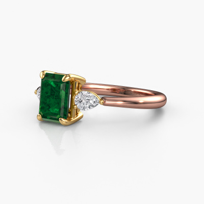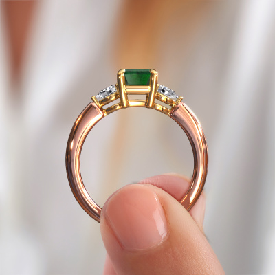 Dieser geschmackvolle Verlobungsring aus 14 Karat Roségold mit 7.5x5.5 mm Smaragd heißt Chanou EME. Für Sie gibt es nur eine Person in Ihrem Leben, die in einer Menschenmenge auffällt. Nur eine, die Ihr Herz höherschlagen lässt. Ein wahres Juwel! Sie verdient vor allem ein besonderes Geschenk. Ein einzigartiges, maßgefertigtes Schmuckstück, das allein zu ihren Ehren angefertigt wurde. Wir glauben, dass dieser Ring perfekt für Ihren besonderen Moment ist. Jedes Detail dieses exklusiven, Roségold 3-stone Verlobungsring wird von Hand ausgewählt, bearbeitet und poliert - von unserem erfahrenen Juwelier in unserem eigenen Studio. Wir streben nach dem perfekten Design und der Zusammensetzung des Rings, damit er die einzigartigen Eigenschaften unserer Smaragd unterstreicht und sie noch heller erstrahlen lässt. Es braucht viel Präzision, aber am Ende zahlt es sich wegen der Schönheit des Rings aus. Und das ist unser Hauptziel. Das ist es, was uns begeistert. Das Besondere an unserem Konfigurator ist dass Sie selbst einem Schmuckstück zusammenstellen können zu einem eigenen persönlichen Schmuckstück. Dieser 3-stone Verlobungsring ist gefertigt in der Edelmetall Kombination Roségold mit Gold, aber Sie können also auch wählen aus anderen Farben. Jedes Schmuckstück wird von unseren Meister-Goldschmieden in unserem eigenen Studio für Sie gefertigt.. Durch die Kombination modernster Technik mit uralter Handwerkskunst können wir alle Verlobungsringe in unserem eigenen Studio anfertigen. Jedes Schmuckstück wird auf Anfrage gefertigt. Das ist vorteilhaft, weil wir Ihnen dadurch einen Preis anbieten können, den Sie nirgendwo anders finden.Unsere Designer und Goldschmiede arbeiten jeden Tag zusammen und versuchen, neue Schmuckstücke zu kreieren. Vielleicht haben Sie irgendwo einen schönen, einzigartige Verlobungsring gefunden, nach dem Ihr einzigartiger Ring gestaltet werden kann. Setzen Sie sich mit uns in Verbindung. Wir machen Ihnen ein Angebot, basierend auf einem fairen Preis/Leistungsverhältnis, das Sie begeistern wird.Um es einfacher zu machen, bieten wir eine kostenlose 30-tägige Rücksendung.