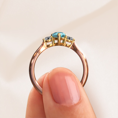 Dieser besondere Verlobungsring aus 14 Karat Roségold mit 7x5 mm Blau Topas heißt Lieselot PER. Für Sie gibt es nur eine Person in Ihrem Leben, die in einer Menschenmenge auffällt. Nur eine, die Ihr Herz höherschlagen lässt. Ein wahres Juwel! Sie verdient vor allem ein besonderes Geschenk. Ein einzigartiges, maßgefertigtes Schmuckstück, das allein zu ihren Ehren angefertigt wurde. Wir glauben, dass dieser Ring perfekt für Ihren besonderen Moment ist. Jedes Detail dieses exklusiven, Roségold 3-stone Verlobungsring wird von Hand ausgewählt, bearbeitet und poliert - von unserem erfahrenen Juwelier in unserem eigenen Studio. Wir streben nach dem perfekten Design und der Zusammensetzung des Rings, damit er die einzigartigen Eigenschaften unserer Blaue Topas unterstreicht und sie noch heller erstrahlen lässt. Es braucht viel Präzision, aber am Ende zahlt es sich wegen der Schönheit des Rings aus. Und das ist unser Hauptziel. Das ist es, was uns begeistert. Das Besondere an unserem Konfigurator ist dass Sie selbst einem Schmuckstück zusammenstellen können zu einem eigenen persönlichen Schmuckstück. Dieser 3-stone Verlobungsring ist gefertigt in der Edelmetall Kombination Roségold mit Gold, aber Sie können also auch wählen aus anderen Farben. Jedes Schmuckstück wird hergestellt mit Leidenschaft und Liebe, von einem unserer Meister-Goldschmiede.. Haben Sie ein bestimmtes Budget? Sie können uns gerne kontaktieren, damit wir Ihre Optionen besprechen können. Wir bieten unsere Verlobungsringe zum garantiert besten Preis, denn wir fertigen sie auf Bestellung. Solche Preise finden Sie nirgendwo anders!Verschiedene Arten von neuen Ringen werden täglich von unserem Team angefertigt. Vielleicht haben Sie irgendwo einen 3-stone Verlobungsring gefunden. Einen, den Sie Ihrem Liebsten schenken möchten. Bitte zögern Sie nicht, unseren Schmuckdesignern Ihre Gedanken und Ihr Design zu zeigen. Wir würden gerne Ihr Design in einen modische Verlobungsring verwandeln. Sie können die Entwicklungen Ihres Ringdesigns verfolgen, da wir sehr detaillierte 3D-Zeichnungen verwenden. Darüber hinaus können Sie einen Dummy des Designs bestellen. Ein Dummy ist ein Kunststoffring, der nach Ihrem Ringdesign gestaltet werden kann. Sie können ihn anprobieren und prüfen, ob der Verlobungsring Ihren Vorstellungen entspricht. Wir senden Ihnen gerne ein unverbindliches Angebot zu einem fairen Preis/Leistungsverhältnis. Das Angebot wird Sie angesichts der Qualität des Rings und der Edelsteine verblüffen.Um es einfacher zu machen, bieten wir eine kostenlose 30-tägige Rücksendung.
