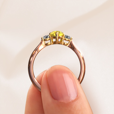 Dieser besondere Verlobungsring aus 14 Karat Roségold mit 7x5 mm Gelb Saphir heißt Lieselot PER. Für Sie gibt es nur eine Person in Ihrem Leben, die in einer Menschenmenge auffällt. Nur eine, die Ihr Herz höherschlagen lässt. Ein wahres Juwel! Sie verdient vor allem ein besonderes Geschenk. Ein einzigartiges, maßgefertigtes Schmuckstück, das allein zu ihren Ehren angefertigt wurde. Wir glauben, dass dieser Ring perfekt für Ihren besonderen Moment ist. Jedes Detail dieses exklusiven, Roségold 3-stone Verlobungsring wird von Hand ausgewählt, bearbeitet und poliert - von unserem erfahrenen Juwelier in unserem eigenen Studio. Wir streben nach dem perfekten Design und der Zusammensetzung des Rings, damit er die einzigartigen Eigenschaften unserer Gelb Saphir unterstreicht und sie noch heller erstrahlen lässt. Es braucht viel Präzision, aber am Ende zahlt es sich wegen der Schönheit des Rings aus. Und das ist unser Hauptziel. Das ist es, was uns begeistert. Das Besondere an unserem Konfigurator ist dass Sie selbst einem Schmuckstück zusammenstellen können zu einem eigenen persönlichen Schmuckstück. Dieser 3-stone Verlobungsring ist gefertigt in der Edelmetall Kombination Roségold mit Gold, aber Sie können also auch wählen aus anderen Farben. Jedes Schmuckstück wird hergestellt mit Leidenschaft und Liebe, von einem unserer Meister-Goldschmiede.. Haben Sie ein bestimmtes Budget? Sie können uns gerne kontaktieren, damit wir Ihre Optionen besprechen können. Wir bieten unsere Verlobungsringe zum garantiert besten Preis, denn wir fertigen sie auf Bestellung. Solche Preise finden Sie nirgendwo anders!Verschiedene Arten von neuen Ringen werden täglich von unserem Team angefertigt. Vielleicht haben Sie irgendwo einen 3-stone Verlobungsring gefunden. Einen, den Sie Ihrem Liebsten schenken möchten. Bitte zögern Sie nicht, unseren Schmuckdesignern Ihre Gedanken und Ihr Design zu zeigen. Wir würden gerne Ihr Design in einen modische Verlobungsring verwandeln. Sie können die Entwicklungen Ihres Ringdesigns verfolgen, da wir sehr detaillierte 3D-Zeichnungen verwenden. Darüber hinaus können Sie einen Dummy des Designs bestellen. Ein Dummy ist ein Kunststoffring, der nach Ihrem Ringdesign gestaltet werden kann. Sie können ihn anprobieren und prüfen, ob der Verlobungsring Ihren Vorstellungen entspricht. Wir senden Ihnen gerne ein unverbindliches Angebot zu einem fairen Preis/Leistungsverhältnis. Das Angebot wird Sie angesichts der Qualität des Rings und der Edelsteine verblüffen.Um es einfacher zu machen, bieten wir eine kostenlose 30-tägige Rücksendung.