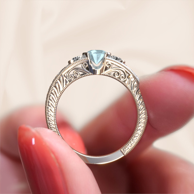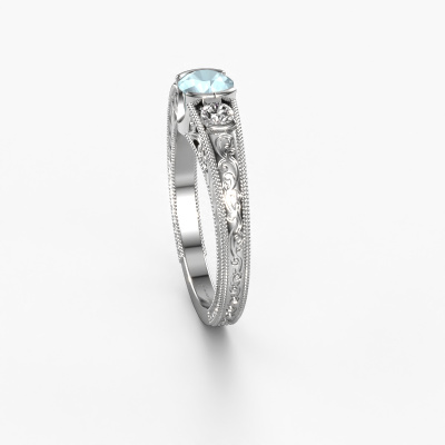 Dieser Filigrane Verlobungsring aus 14 Karat Weißgold heißt Tasia und hat 5 mm Aquamarin. Ist Ihre Freundin von Vintage begeistert? Dann wird dieser Weißgold Verlobungsring sicherlich perfekt zu ihrem Stil passen. Ein trendiger Ring mit einem Hauch von klassischem Schmuck. Ein wirklich atemberaubendes, romantisches Design! Vor allem, wenn Sie den Ring nach ihren Wünschen anpassen. Dieser Vintage 3-stone Verlobungsring ist mit atemberaubenden Aquamarins besetzt. Wie Sie sehen können, sind Sie der Boss bei der Auswahl des Edelsteins, der am besten zu Ihrer Freundin passt. Jeder Edelstein wird sorgfältig von unseren Händlern ausgewählt, die auf der ganzen Welt verteilt sind. Nichts als die besten Edelsteine für unseren erfahrenen Juwelier! Schließlich ist es seine Krönung! Jedes Schmuckstück wird hergestellt mit Leidenschaft und Liebe, von einem unserer Meister-Goldschmiede.Durch die Kombination modernster Technik mit uralter Handwerkskunst können wir alle Verlobungsringe in unserem eigenen Studio anfertigen. Jedes Schmuckstück wird auf Anfrage gefertigt. Das ist vorteilhaft, weil wir Ihnen dadurch einen Preis anbieten können, den Sie nirgendwo anders finden.Unser Team fügt unserer Online-Kollektion täglich neue Designs hinzu. Unsere Designer und Goldschmiede arbeiten zusammen, um das beste Design zu kreieren. Wir bemühen uns, eine vielfältige Kollektion von Schmuckstücken anzubieten. Vielleicht haben Sie ein bestimmtes Design im Sinn. Eines, dass Sie irgendwo gesehen haben. Gerne geben wir Ihnen eine kostenlose Beratung. Wir machen Ihnen ein Angebot, basierend auf einem fairen Preis/Leistungsverhältnis, das Sie verblüffen wird.Um es einfacher zu machen, bieten wir eine kostenlose 30-tägige Rücksendung.
