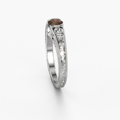 Dieser Filigrane Verlobungsring aus 14 Karat Weißgold heißt Tasia und hat 5 mm Rauchquarz. Ist Ihre Freundin von Vintage begeistert? Dann wird dieser Weißgold Verlobungsring sicherlich perfekt zu ihrem Stil passen. Ein trendiger Ring mit einem Hauch von klassischem Schmuck. Ein wirklich atemberaubendes, romantisches Design! Vor allem, wenn Sie den Ring nach ihren Wünschen anpassen. Dieser Vintage 3-stone Verlobungsring ist mit atemberaubenden Rauchquarz besetzt. Wie Sie sehen können, sind Sie der Boss bei der Auswahl des Edelsteins, der am besten zu Ihrer Freundin passt. Jeder Edelstein wird sorgfältig von unseren Händlern ausgewählt, die auf der ganzen Welt verteilt sind. Nichts als die besten Edelsteine für unseren erfahrenen Juwelier! Schließlich ist es seine Krönung! Jedes Schmuckstück wird hergestellt mit Leidenschaft und Liebe, von einem unserer Meister-Goldschmiede.Durch die Kombination modernster Technik mit uralter Handwerkskunst können wir alle Verlobungsringe in unserem eigenen Studio anfertigen. Jedes Schmuckstück wird auf Anfrage gefertigt. Das ist vorteilhaft, weil wir Ihnen dadurch einen Preis anbieten können, den Sie nirgendwo anders finden.Unser Team fügt unserer Online-Kollektion täglich neue Designs hinzu. Unsere Designer und Goldschmiede arbeiten zusammen, um das beste Design zu kreieren. Wir bemühen uns, eine vielfältige Kollektion von Schmuckstücken anzubieten. Vielleicht haben Sie ein bestimmtes Design im Sinn. Eines, dass Sie irgendwo gesehen haben. Gerne geben wir Ihnen eine kostenlose Beratung. Wir machen Ihnen ein Angebot, basierend auf einem fairen Preis/Leistungsverhältnis, das Sie verblüffen wird.Um es einfacher zu machen, bieten wir eine kostenlose 30-tägige Rücksendung.