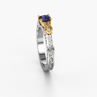 Dieser ajour Verlobungsring aus 14 Karat Weißgold heißt Gillian und hat 5 mm Saphir. Ist Ihre Freundin von Vintage begeistert? Dann wird dieser Weißgold Verlobungsring sicherlich perfekt zu ihrem Stil passen. Ein trendiger Ring mit einem Hauch von klassischem Schmuck. Ein wirklich atemberaubendes, romantisches Design! Vor allem, wenn Sie den Ring nach ihren Wünschen anpassen. Dieser Vintage 3-stone Verlobungsring ist mit atemberaubenden Saphir besetzt. Wie Sie sehen können, sind Sie der Boss bei der Auswahl des Edelsteins, der am besten zu Ihrer Freundin passt. Jeder Edelstein wird sorgfältig von unseren Händlern ausgewählt, die auf der ganzen Welt verteilt sind. Nichts als die besten Edelsteine für unseren erfahrenen Juwelier! Schließlich ist es seine Krönung! Jedes Schmuckstück wird nur für Sie persönlich hergestellt, mit Liebe zum Detail und Design.Nach Erhalt Ihrer Bestellung beginnen unsere Goldschmiede mit Leidenschaft den kreativen Prozess und fertigen Ihren Verlobungsring in unserem eigenen Studio. Da wir keine großen Lager haben, werden diese Kosten nicht an Sie weitergegeben. Unsere Preisgestaltung ist der Beweis dafür! Wir bieten Schmuck zum niedrigsten Preis, garantiert.Verschiedene Arten von neuen Ringen werden täglich von unserem Team angefertigt. Vielleicht haben Sie irgendwo einen 3-stone Verlobungsring gefunden. Einen, den Sie Ihrem Liebsten schenken möchten. Bitte zögern Sie nicht, unseren Schmuckdesignern Ihre Gedanken und Ihr Design zu zeigen. Wir würden gerne Ihr Design in einen Vintage Verlobungsring verwandeln. Sie können die Entwicklungen Ihres Ringdesigns verfolgen, da wir sehr detaillierte 3D-Zeichnungen verwenden. Darüber hinaus können Sie einen Dummy des Designs bestellen. Ein Dummy ist ein Kunststoffring, der nach Ihrem Ringdesign gestaltet werden kann. Sie können ihn anprobieren und prüfen, ob der Verlobungsring Ihren Vorstellungen entspricht. Wir senden Ihnen gerne ein unverbindliches Angebot zu einem fairen Preis/Leistungsverhältnis. Das Angebot wird Sie angesichts der Qualität des Rings und der Edelsteine verblüffen.Um es einfacher zu machen, bieten wir eine kostenlose 30-tägige Rücksendung.