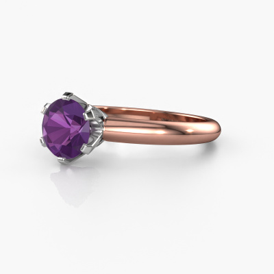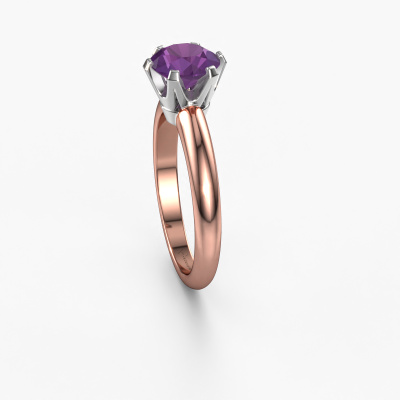 Der oben gezeigte Verlobungsring wird Tiffy 1 genannt. Wir nennen das einen Solitär-Ring, denn er hat einen einzelnen Edelstein. Es ist ein 14 Karat Roségold ring, mit 7 mm rund Amethyst. Das Besondere an unserem Konfigurator ist dass Sie selbst einem Schmuckstück zusammenstellen können zu einem eigenen persönlichen Schmuckstück. Dieser Solitäre Verlobungsring ist gefertigt in der Edelmetall Kombination Roségold mit Weißgold, aber Sie können also auch wählen aus anderen Farben. Jedes Schmuckstück wird nur für Sie persönlich hergestellt, mit Liebe zum Detail und Design. Der Solitär-Verlobungsring ist eine Sonderform des Verlobungsring. Seine offenen Krappen ermöglichen, dass Licht aus mehr Winkeln auf den Edelstein trifft. Dieser klassische Verlobungsring ist durch die hohe Positionierung des Edelsteins ein atemberaubender Blickfang. Wir schmücken diesen Solitär-Ring sorgfältig von Hand, damit Sie Ihren Anfrage mit einem einzigartigen Ring würdigen können. Die Liebe Ihres Lebens verdient nur das Beste. Mit unserer modernen Technik können wir Schmuckstücke von höchster Qualität mit größter Sorgfalt für Sie entwerfen und anpassen. Unsere Verlobungsringe sind immer um 30 Prozent günstiger als bei anderen Juwelieren. Wir fertigen Verlobungsringe auf Bestellung, also müssen wir keine großen Lager unterhalten. Wenn Sie ein bestimmtes Budget haben, beraten wir Sie gerne entsprechend.Unsere Designer und Goldschmiede arbeiten jeden Tag zusammen und versuchen, neue Schmuckstücke zu kreieren. Vielleicht haben Sie irgendwo einen schönen, klassische Verlobungsring gefunden, nach dem Ihr einzigartiger Ring gestaltet werden kann. Setzen Sie sich mit uns in Verbindung. Wir machen Ihnen ein Angebot, basierend auf einem fairen Preis/Leistungsverhältnis, das Sie begeistern wird.Um es einfacher zu machen, bieten wir eine kostenlose 30-tägige Rücksendung.