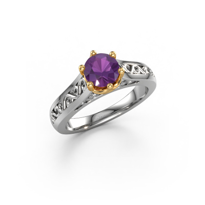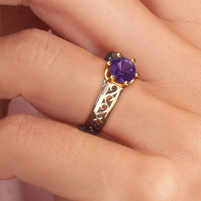 Der oben gezeigte Verlobungsring wird Shan genannt. Wir nennen das einen Solitär-Ring, denn er hat einen einzelnen Edelstein. Es ist ein 14 Karat Weißgold ring, mit 6 mm rund Amethyst. Das Besondere an unserem Konfigurator ist dass Sie selbst einem Schmuckstück zusammenstellen können zu einem eigenen persönlichen Schmuckstück. Dieser Solitäre Verlobungsring ist gefertigt in der Edelmetall Kombination Weißgold mit Gold, aber Sie können also auch wählen aus anderen Farben. Jedes Schmuckstück wird hergestellt von einem Team leidenschaftlicher Goldschmiede und Schmuckdesigner. Das wird Ihr Kronjuwel unbedingt zu einem Blickfang machen. Der Solitär-Verlobungsring ist eine Sonderform des Verlobungsring. Seine offenen Krappen ermöglichen, dass Licht aus mehr Winkeln auf den Edelstein trifft. Dieser Keltische Verlobungsring ist durch die hohe Positionierung des Edelsteins ein atemberaubender Blickfang. Wir schmücken diesen Solitär-Ring sorgfältig von Hand, damit Sie Ihren Anfrage mit einem einzigartigen Ring würdigen können. Die Liebe Ihres Lebens verdient nur das Beste. Mit unserer modernen Technik können wir Schmuckstücke von höchster Qualität mit größter Sorgfalt für Sie entwerfen und anpassen. Unsere Verlobungsringe sind immer um 30 Prozent günstiger als bei anderen Juwelieren. Wir fertigen Verlobungsringe auf Bestellung, also müssen wir keine großen Lager unterhalten. Wenn Sie ein bestimmtes Budget haben, beraten wir Sie gerne entsprechend.Haben Sie irgendwo einen bestimmten Verlobungsring gefunden, den Sie Ihrem Liebsten schenken möchten? Sie können uns gerne sagen, was Sie wollen und wir werden Ihr Design in einen Einzigartigen Keltische Verlobungsring verwandeln. Sie können die Entwicklungen Ihres Ringdesigns verfolgen, da wir 3D-Zeichnungen verwenden. Das gibt Ihnen eine realistische Vorschau, wie Ihr Design aussehen wird. Sie können auch einen Dummy vorbestellen. Ein Dummy ist ein Kunststoffring, der nach Ihrem Ringdesign gestaltet werden kann. Sie können ihn anprobieren und prüfen, ob seine Breite und Größe für Sie geeignet sind. Wir senden Ihnen gerne ein unverbindliches Angebot zu einem fairen Preis/Leistungsverhältnis. Sie werden in Anbetracht der Qualität des Rings und der Edelsteine überrascht sein.Um es einfacher zu machen, bieten wir eine kostenlose 30-tägige Rücksendung.