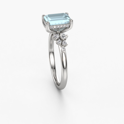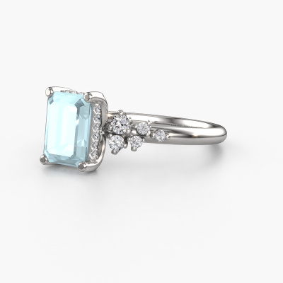 Der oben gezeigte Ring wird Emma EME genannt. Es ist ein Pavé Solitär Ring, da er einen zentralen Edelstein und ein Band mit Pavé-Fassung hat. Dieser Platin ring ist mit einem 8x6 mm smaragd schliff Aquamarin-Mittelstein besetzt und das Band hat eine Pavé-Fassung mit Lab grown Diamant. Jedes Schmuckstück wird hergestellt mit Leidenschaft und Liebe, von einem unserer Meister-Goldschmiede.Dieser Fantasie Platin Pavé Solitär Verlobungsring mit Pavé-Fassung hat einen exquisiten, smaragd schliff Aquamarin als Mittelstein. Um den zentralen Stein noch mehr zu betonen, hat das Band eine Pavé-Fassung mit weiteren Lab grown Diamant. Durch die offenen Krappen kann das Licht aus mehreren Winkeln auf den Aquamarin treffen und der Aquamarin-Ring funkelt noch mehr. Das obere Foto zeigt die leidenschaftlich handgefertigten Details des Rings. Die hohe Positionierung der Mittelstein ist ein echter Blickfang. Der perfekte Verlobungsring für das Kronjuwel Ihres Lebens!Nach Erhalt Ihrer Bestellung beginnen unsere Goldschmiede mit Leidenschaft den kreativen Prozess und fertigen Ihren Verlobungsring in unserem eigenen Studio. Da wir keine großen Lager haben, werden diese Kosten nicht an Sie weitergegeben. Unsere Preisgestaltung ist der Beweis dafür! Wir bieten Schmuck zum niedrigsten Preis, garantiert.Unser Team fügt unserer Online-Kollektion täglich neue Designs hinzu. Unsere Designer und Goldschmiede arbeiten zusammen, um das beste Design zu kreieren. Wir bemühen uns, eine vielfältige Kollektion von Schmuckstücken anzubieten. Vielleicht haben Sie ein bestimmtes Design im Sinn. Eines, dass Sie irgendwo gesehen haben. Gerne geben wir Ihnen eine kostenlose Beratung. Wir machen Ihnen ein Angebot, basierend auf einem fairen Preis/Leistungsverhältnis, das Sie verblüffen wird.Um es einfacher zu machen, bieten wir eine kostenlose 30-tägige Rücksendung.