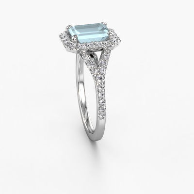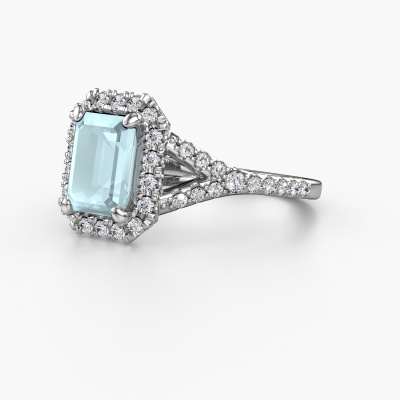 Der oben gezeigte Platin Verlobungsring wird Kimber EME genannt. Es ist ein Pavé Solitär Ring, da er einen zentralen Edelstein und ein Band mit Pavé-Fassung hat. Der exklusive Pavé Solitär Verlobungsring ist in der Kombination Platin mit Platin und ist mit einem smaragd schliff 8x6 mm Aquamarin-Mittelstein besetzt und das Band hat eine Pavé-Fassung mit Lab grown Diamant. Jedes Schmuckstück wird hergestellt von einem Team leidenschaftlicher Goldschmiede und Schmuckdesigner. Das wird Ihr Kronjuwel unbedingt zu einem Blickfang machen. Um den zentralen Stein noch mehr zu betonen, hat das Band eine Pavé-Fassung mit weiteren Aquamarin. Durch die offenen Krappen kann das Licht aus mehreren Winkeln auf den Aquamarin treffen und der Aquamarin-Ring funkelt noch mehr. Das obere Foto zeigt die leidenschaftlich handgefertigten Details des Rings. Die hohe Positionierung der Mittelstein ist ein echter Blickfang. Der perfekte Verlobungsring für das Kronjuwel Ihres Lebens!Durch die Kombination modernster Technik mit uralter Handwerkskunst können wir alle Verlobungsringe in unserem eigenen Studio anfertigen. Jedes Schmuckstück wird auf Anfrage gefertigt. Das ist vorteilhaft, weil wir Ihnen dadurch einen Preis anbieten können, den Sie nirgendwo anders finden.Unser Team fügt unserer Online-Kollektion täglich neue Designs hinzu. Unsere Designer und Goldschmiede arbeiten zusammen, um das beste Design zu kreieren. Wir bemühen uns, eine vielfältige Kollektion von Schmuckstücken anzubieten. Vielleicht haben Sie ein bestimmtes Design im Sinn. Eines, dass Sie irgendwo gesehen haben. Gerne geben wir Ihnen eine kostenlose Beratung. Wir machen Ihnen ein Angebot, basierend auf einem fairen Preis/Leistungsverhältnis, das Sie verblüffen wird.Um es einfacher zu machen, bieten wir eine kostenlose 30-tägige Rücksendung.