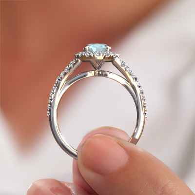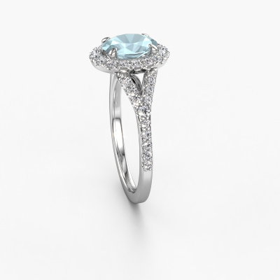 Der oben gezeigte Platin Verlobungsring wird Kimber OVL genannt. Es ist ein Pavé Solitär Ring, da er einen zentralen Edelstein und ein Band mit Pavé-Fassung hat. Der exklusive Pavé Solitär Verlobungsring ist in der Kombination Platin mit Platin und ist mit einem oval 8x6 mm Aquamarin-Mittelstein besetzt und das Band hat eine Pavé-Fassung mit Lab grown Diamant. Jedes Schmuckstück wird hergestellt mit Leidenschaft und Liebe, von einem unserer Meister-Goldschmiede. Um den zentralen Stein noch mehr zu betonen, hat das Band eine Pavé-Fassung mit weiteren Aquamarin. Durch die offenen Krappen kann das Licht aus mehreren Winkeln auf den Aquamarin treffen und der Aquamarin-Ring funkelt noch mehr. Das obere Foto zeigt die leidenschaftlich handgefertigten Details des Rings. Die hohe Positionierung der Mittelstein ist ein echter Blickfang. Der perfekte Verlobungsring für das Kronjuwel Ihres Lebens!Durch die Kombination modernster Technik mit uralter Handwerkskunst können wir alle Verlobungsringe in unserem eigenen Studio anfertigen. Jedes Schmuckstück wird auf Anfrage gefertigt. Das ist vorteilhaft, weil wir Ihnen dadurch einen Preis anbieten können, den Sie nirgendwo anders finden.Unser Team fügt unserer Online-Kollektion täglich neue Designs hinzu. Unsere Designer und Goldschmiede arbeiten zusammen, um das beste Design zu kreieren. Wir bemühen uns, eine vielfältige Kollektion von Schmuckstücken anzubieten. Vielleicht haben Sie ein bestimmtes Design im Sinn. Eines, dass Sie irgendwo gesehen haben. Gerne geben wir Ihnen eine kostenlose Beratung. Wir machen Ihnen ein Angebot, basierend auf einem fairen Preis/Leistungsverhältnis, das Sie verblüffen wird.Um es einfacher zu machen, bieten wir eine kostenlose 30-tägige Rücksendung.
