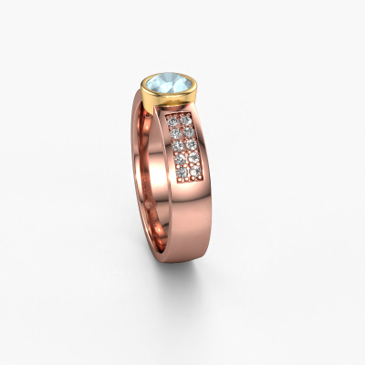 Der oben gezeigte Roségold Verlobungsring wird Ise 3 genannt. Es ist ein Pavé Solitär Ring, da er einen zentralen Edelstein und ein Band mit Pavé-Fassung hat. Der moderne Pavé Solitär Verlobungsring ist in der Kombination 14 Karat Roségold mit Gold und ist mit einem rund 4.7 mm Aquamarin-Mittelstein besetzt und das Band hat eine Pavé-Fassung mit Diamanten. Jedes Schmuckstück wird von unseren Meister-Goldschmieden in unserem eigenen Studio für Sie gefertigt. Um den zentralen Stein noch mehr zu betonen, hat das Band eine Pavé-Fassung mit weiteren Aquamarin. Durch die offenen Krappen kann das Licht aus mehreren Winkeln auf den Aquamarin treffen und der Aquamarin-Ring funkelt noch mehr. Das obere Foto zeigt die leidenschaftlich handgefertigten Details des Rings. Die hohe Positionierung der Mittelstein ist ein echter Blickfang. Der perfekte Verlobungsring für das Kronjuwel Ihres Lebens!Da wir unsere eigenen Ringe entwerfen und liefern, können wir Ihnen einen Verlobungsring zu einem Preis anbieten, den Sie nirgendwo anders finden. Ein Ring wird auf Bestellung angefertigt, wodurch kein überschüssiges Material anfällt. So können wir Ihnen ein gutes Angebot zum besten Preis machen. Wir verstehen, dass es sich riskant anfühlt, Ihren Verlobungsring online zu kaufen. Jedoch helfen wir Ihnen gerne beim Designprozess unter Berücksichtigung Ihres Budgets.Unser Team fügt unserer Online-Kollektion täglich neue Designs hinzu. Unsere Designer und Goldschmiede arbeiten zusammen, um das beste Design zu kreieren. Wir bemühen uns, eine vielfältige Kollektion von Schmuckstücken anzubieten. Vielleicht haben Sie ein bestimmtes Design im Sinn. Eines, dass Sie irgendwo gesehen haben. Gerne geben wir Ihnen eine kostenlose Beratung. Wir machen Ihnen ein Angebot, basierend auf einem fairen Preis/Leistungsverhältnis, das Sie verblüffen wird.Um es einfacher zu machen, bieten wir eine kostenlose 30-tägige Rücksendung.