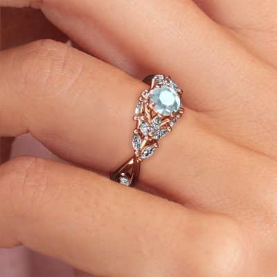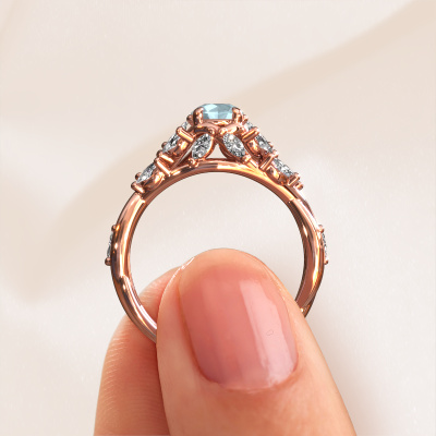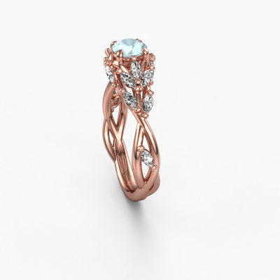 Der oben gezeigte Ring wird Samantha RND genannt. Es ist ein Pavé Solitär Ring, da er einen zentralen Edelstein und ein Band mit Pavé-Fassung hat. Dieser 14 Karat Roségold ring ist mit einem 5 mm rund Aquamarin-Mittelstein besetzt und das Band hat eine Pavé-Fassung mit Diamanten. Jedes Schmuckstück wird hergestellt mit Leidenschaft und Liebe, von einem unserer Meister-Goldschmiede.Dieser moderne Roségold Pavé Solitär Verlobungsring mit Pavé-Fassung hat einen exquisiten, rund Aquamarin als Mittelstein. Um den zentralen Stein noch mehr zu betonen, hat das Band eine Pavé-Fassung mit weiteren Diamanten. Durch die offenen Krappen kann das Licht aus mehreren Winkeln auf den Aquamarin treffen und der Aquamarin-Ring funkelt noch mehr. Das obere Foto zeigt die leidenschaftlich handgefertigten Details des Rings. Die hohe Positionierung der Mittelstein ist ein echter Blickfang. Der perfekte Verlobungsring für das Kronjuwel Ihres Lebens!Durch die Kombination modernster Technik mit uralter Handwerkskunst können wir alle Verlobungsringe in unserem eigenen Studio anfertigen. Jedes Schmuckstück wird auf Anfrage gefertigt. Das ist vorteilhaft, weil wir Ihnen dadurch einen Preis anbieten können, den Sie nirgendwo anders finden.Unsere Designer und Goldschmiede arbeiten jeden Tag zusammen und versuchen, neue Schmuckstücke zu kreieren. Vielleicht haben Sie irgendwo einen schönen, moderne Verlobungsring gefunden, nach dem Ihr einzigartiger Ring gestaltet werden kann. Setzen Sie sich mit uns in Verbindung. Wir machen Ihnen ein Angebot, basierend auf einem fairen Preis/Leistungsverhältnis, das Sie begeistern wird.Um es einfacher zu machen, bieten wir eine kostenlose 30-tägige Rücksendung.