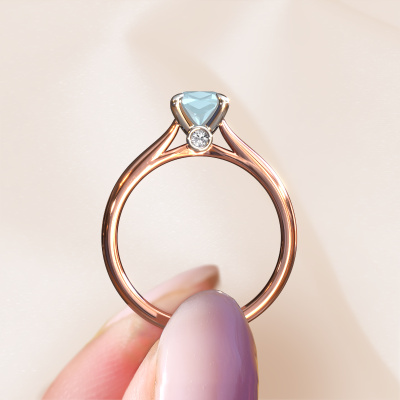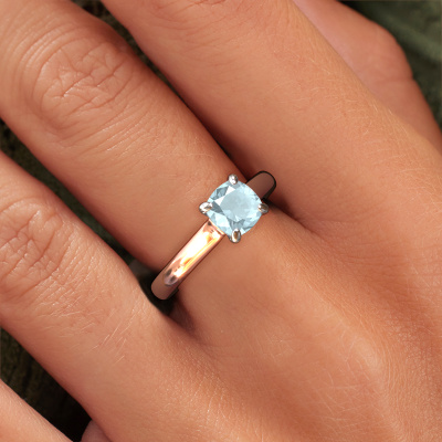 Der oben gezeigte Verlobungsring wird Valorie cus 1 genannt. Wir nennen das einen Solitär-Ring, denn er hat einen einzelnen Edelstein. Es ist ein 14 Karat Roségold ring, mit 6 mm cussion Aquamarin. Das Besondere an unserem Konfigurator ist dass Sie selbst einem Schmuckstück zusammenstellen können zu einem eigenen persönlichen Schmuckstück. Dieser Solitäre Verlobungsring ist gefertigt in der Edelmetall Kombination Roségold mit Weißgold, aber Sie können also auch wählen aus anderen Farben. Jedes Schmuckstück lässt Ihren Finger erstrahlen. Ihr Ring ist mit Liebe von unseren Goldschmieden handgefertigt. Der Solitär-Verlobungsring ist eine Sonderform des Verlobungsring. Seine offenen Krappen ermöglichen, dass Licht aus mehr Winkeln auf den Edelstein trifft. Dieser klassische Verlobungsring ist durch die hohe Positionierung des Edelsteins ein atemberaubender Blickfang. Wir schmücken diesen Solitär-Ring sorgfältig von Hand, damit Sie Ihren Anfrage mit einem einzigartigen Ring würdigen können. Die Liebe Ihres Lebens verdient nur das Beste. Haben Sie ein bestimmtes Budget? Sie können uns gerne kontaktieren, damit wir Ihre Optionen besprechen können. Wir bieten unsere Verlobungsringe zum garantiert besten Preis, denn wir fertigen sie auf Bestellung. Solche Preise finden Sie nirgendwo anders!Haben Sie irgendwo einen bestimmten Verlobungsring gefunden, den Sie Ihrem Liebsten schenken möchten? Sie können uns gerne sagen, was Sie wollen und wir werden Ihr Design in einen Einzigartigen klassische Verlobungsring verwandeln. Sie können die Entwicklungen Ihres Ringdesigns verfolgen, da wir 3D-Zeichnungen verwenden. Das gibt Ihnen eine realistische Vorschau, wie Ihr Design aussehen wird. Sie können auch einen Dummy vorbestellen. Ein Dummy ist ein Kunststoffring, der nach Ihrem Ringdesign gestaltet werden kann. Sie können ihn anprobieren und prüfen, ob seine Breite und Größe für Sie geeignet sind. Wir senden Ihnen gerne ein unverbindliches Angebot zu einem fairen Preis/Leistungsverhältnis. Sie werden in Anbetracht der Qualität des Rings und der Edelsteine überrascht sein.Um es einfacher zu machen, bieten wir eine kostenlose 30-tägige Rücksendung.
