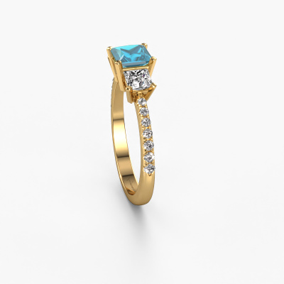 Dieser Verlobungsring aus 14 Karat Gold mit 5 mm Blau Topas heißt Dorla. Was macht Ihre Beziehung einzigartig? Was hat sie an sich, was Sie dazu bringt, auf die Knie zu fallen? Die einzigartige Verbindung zwischen Ihnen beiden wird durch einen ebenso einzigartigen Ring unterstrichen. Ein einzigartiger 3-stone Verlobungsring, der nur für sie gemacht wurde. Deshalb passt dieser Ring wie angegossen. Jedes einzelne Detail dieses Micropavé, Gold Blau Topas Verlobungsring wird von unserem erfahrenen Goldschmieden in unserem eigenen Studio von Hand ausgesucht, bearbeitet und poliert. Das Endprodukt ist ein exquisiter Ring, einzigartig und bis zur Perfektion gebracht. Danach streben unsere erfahrenen Juweliere. Jedes Schmuckstück ist einzigartig in jeder Hinsicht! Einfach nach Ihren Wünschen anzupassen.Nach Erhalt Ihrer Bestellung beginnen unsere Goldschmiede mit Leidenschaft den kreativen Prozess und fertigen Ihren Verlobungsring in unserem eigenen Studio. Da wir keine großen Lager haben, werden diese Kosten nicht an Sie weitergegeben. Unsere Preisgestaltung ist der Beweis dafür! Wir bieten Schmuck zum niedrigsten Preis, garantiert.Haben Sie einen bestimmten Ring im Sinn? Eines, dass Sie irgendwo gesehen haben. Bitte zögern Sie nicht, uns zu sagen, was Sie wollen und wir werden Ihr Design in einen Einzigartigen Verlobungsring verwandeln. Sie können die Entwicklungen Ihres Ringdesigns verfolgen, da wir 3D-Zeichnungen verwenden. Das gibt Ihnen eine realistische Vorschau Ihres Designs. Wir senden Ihnen gerne ein unverbindliches Angebot zu einem fairen Preis/Leistungsverhältnis. Es wird Sie erstaunen.Um es einfacher zu machen, bieten wir eine kostenlose 30-tägige Rücksendung.
