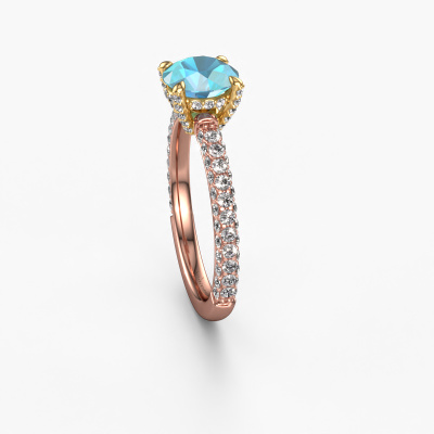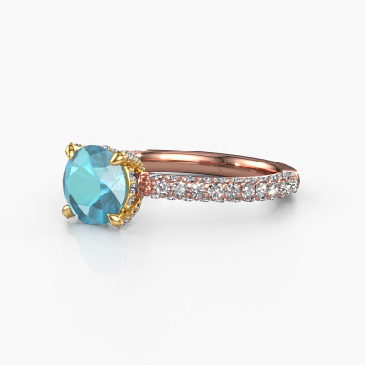 Der oben gezeigte Roségold Verlobungsring wird Saskia rnd 2 genannt. Es ist ein Pavé Solitär Ring, da er einen zentralen Edelstein und ein Band mit Pavé-Fassung hat. Der exklusive Pavé Solitär Verlobungsring ist in der Kombination 14 Karat Roségold mit Gold und ist mit einem rund 7 mm Blau Topas-Mittelstein besetzt und das Band hat eine Pavé-Fassung mit Lab grown Diamant. Jedes Schmuckstück wird hergestellt von einem Team leidenschaftlicher Goldschmiede und Schmuckdesigner. Das wird Ihr Kronjuwel unbedingt zu einem Blickfang machen. Um den zentralen Stein noch mehr zu betonen, hat das Band eine Pavé-Fassung mit weiteren Blau Topas. Durch die offenen Krappen kann das Licht aus mehreren Winkeln auf den Blau Topas treffen und der Blau Topas-Ring funkelt noch mehr. Das obere Foto zeigt die leidenschaftlich handgefertigten Details des Rings. Die hohe Positionierung der Mittelstein ist ein echter Blickfang. Der perfekte Verlobungsring für das Kronjuwel Ihres Lebens!Nach Erhalt Ihrer Bestellung beginnen unsere Goldschmiede mit Leidenschaft den kreativen Prozess und fertigen Ihren Verlobungsring in unserem eigenen Studio. Da wir keine großen Lager haben, werden diese Kosten nicht an Sie weitergegeben. Unsere Preisgestaltung ist der Beweis dafür! Wir bieten Schmuck zum niedrigsten Preis, garantiert.Unser Team fügt unserer Online-Kollektion täglich neue Designs hinzu. Unsere Designer und Goldschmiede arbeiten zusammen, um das beste Design zu kreieren. Wir bemühen uns, eine vielfältige Kollektion von Schmuckstücken anzubieten. Vielleicht haben Sie ein bestimmtes Design im Sinn. Eines, dass Sie irgendwo gesehen haben. Gerne geben wir Ihnen eine kostenlose Beratung. Wir machen Ihnen ein Angebot, basierend auf einem fairen Preis/Leistungsverhältnis, das Sie verblüffen wird.Um es einfacher zu machen, bieten wir eine kostenlose 30-tägige Rücksendung.