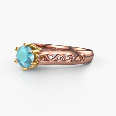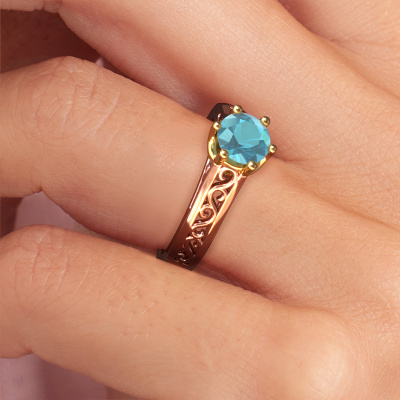 Der oben gezeigte Verlobungsring wird Shan genannt. Wir nennen das einen Solitär-Ring, denn er hat einen einzelnen Edelstein. Es ist ein 14 Karat Roségold ring, mit 6 mm rund Blau Topas. Das Besondere an unserem Konfigurator ist dass Sie selbst einem Schmuckstück zusammenstellen können zu einem eigenen persönlichen Schmuckstück. Dieser Solitäre Verlobungsring ist gefertigt in der Edelmetall Kombination Roségold mit Gold, aber Sie können also auch wählen aus anderen Farben. Jedes Schmuckstück wird hergestellt von einem Team leidenschaftlicher Goldschmiede und Schmuckdesigner. Das wird Ihr Kronjuwel unbedingt zu einem Blickfang machen. Der Solitär-Verlobungsring ist eine Sonderform des Verlobungsring. Seine offenen Krappen ermöglichen, dass Licht aus mehr Winkeln auf den Edelstein trifft. Dieser Keltische Verlobungsring ist durch die hohe Positionierung des Edelsteins ein atemberaubender Blickfang. Wir schmücken diesen Solitär-Ring sorgfältig von Hand, damit Sie Ihren Anfrage mit einem einzigartigen Ring würdigen können. Die Liebe Ihres Lebens verdient nur das Beste. Mit unserer modernen Technik können wir Schmuckstücke von höchster Qualität mit größter Sorgfalt für Sie entwerfen und anpassen. Unsere Verlobungsringe sind immer um 30 Prozent günstiger als bei anderen Juwelieren. Wir fertigen Verlobungsringe auf Bestellung, also müssen wir keine großen Lager unterhalten. Wenn Sie ein bestimmtes Budget haben, beraten wir Sie gerne entsprechend.Haben Sie irgendwo einen bestimmten Verlobungsring gefunden, den Sie Ihrem Liebsten schenken möchten? Sie können uns gerne sagen, was Sie wollen und wir werden Ihr Design in einen Einzigartigen Keltische Verlobungsring verwandeln. Sie können die Entwicklungen Ihres Ringdesigns verfolgen, da wir 3D-Zeichnungen verwenden. Das gibt Ihnen eine realistische Vorschau, wie Ihr Design aussehen wird. Sie können auch einen Dummy vorbestellen. Ein Dummy ist ein Kunststoffring, der nach Ihrem Ringdesign gestaltet werden kann. Sie können ihn anprobieren und prüfen, ob seine Breite und Größe für Sie geeignet sind. Wir senden Ihnen gerne ein unverbindliches Angebot zu einem fairen Preis/Leistungsverhältnis. Sie werden in Anbetracht der Qualität des Rings und der Edelsteine überrascht sein.Um es einfacher zu machen, bieten wir eine kostenlose 30-tägige Rücksendung.