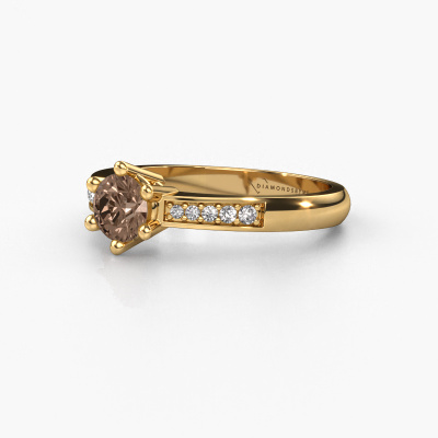 Der oben gezeigte Ring wird Luna 2 genannt. Es ist ein Pavé Solitär Ring, da er einen zentralen Edelstein und ein Band mit Pavé-Fassung hat. Dieser 14 Karat Gold ring ist mit einem 0.50 crt rund Braun Diamant-Mittelstein besetzt und das Band hat eine Pavé-Fassung mit Diamanten. Jedes Schmuckstück ist einzigartig in jeder Hinsicht! Einfach nach Ihren Wünschen anzupassen.Dieser klassische Gold Pavé Solitär Verlobungsring mit Pavé-Fassung hat einen exquisiten, rund Braun Diamant als Mittelstein. Um den zentralen Stein noch mehr zu betonen, hat das Band eine Pavé-Fassung mit weiteren Diamanten. Durch die offenen Krappen kann das Licht aus mehreren Winkeln auf den Braun Diamant treffen und der Braun Diamant-Ring funkelt noch mehr. Das obere Foto zeigt die leidenschaftlich handgefertigten Details des Rings. Die hohe Positionierung der Mittelstein ist ein echter Blickfang. Der perfekte Verlobungsring für das Kronjuwel Ihres Lebens!Da wir unsere eigenen Ringe entwerfen und liefern, können wir Ihnen einen Verlobungsring zu einem Preis anbieten, den Sie nirgendwo anders finden. Ein Ring wird auf Bestellung angefertigt, wodurch kein überschüssiges Material anfällt. So können wir Ihnen ein gutes Angebot zum besten Preis machen. Wir verstehen, dass es sich riskant anfühlt, Ihren Verlobungsring online zu kaufen. Jedoch helfen wir Ihnen gerne beim Designprozess unter Berücksichtigung Ihres Budgets.Unser Team fügt unserer Online-Kollektion täglich neue Designs hinzu. Unsere Designer und Goldschmiede arbeiten zusammen, um das beste Design zu kreieren. Wir bemühen uns, eine vielfältige Kollektion von Schmuckstücken anzubieten. Vielleicht haben Sie ein bestimmtes Design im Sinn. Eines, dass Sie irgendwo gesehen haben. Gerne geben wir Ihnen eine kostenlose Beratung. Wir machen Ihnen ein Angebot, basierend auf einem fairen Preis/Leistungsverhältnis, das Sie verblüffen wird.Um es einfacher zu machen, bieten wir eine kostenlose 30-tägige Rücksendung.