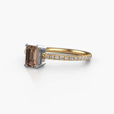 Der oben gezeigte Ring wird Denita 2 EME genannt. Es ist ein Pavé Solitär Ring, da er einen zentralen Edelstein und ein Band mit Pavé-Fassung hat. Dieser 14 Karat Gold ring ist mit einem 0.70 crt smaragd schliff Braun Diamant-Mittelstein besetzt und das Band hat eine Pavé-Fassung mit Diamanten. Jedes Schmuckstück wird von unseren Meister-Goldschmieden in unserem eigenen Studio für Sie gefertigt.Dieser traditionell Gold Pavé Solitär Verlobungsring mit Pavé-Fassung hat einen exquisiten, smaragd schliff Braun Diamant als Mittelstein. Um den zentralen Stein noch mehr zu betonen, hat das Band eine Pavé-Fassung mit weiteren Diamanten. Durch die offenen Krappen kann das Licht aus mehreren Winkeln auf den Braun Diamant treffen und der Braun Diamant-Ring funkelt noch mehr. Das obere Foto zeigt die leidenschaftlich handgefertigten Details des Rings. Die hohe Positionierung der Mittelstein ist ein echter Blickfang. Der perfekte Verlobungsring für das Kronjuwel Ihres Lebens!Haben Sie ein bestimmtes Budget? Sie können uns gerne kontaktieren, damit wir Ihre Optionen besprechen können. Wir bieten unsere Verlobungsringe zum garantiert besten Preis, denn wir fertigen sie auf Bestellung. Solche Preise finden Sie nirgendwo anders!Unser Team fügt unserer Online-Kollektion täglich neue Designs hinzu. Unsere Designer und Goldschmiede arbeiten zusammen, um das beste Design zu kreieren. Wir bemühen uns, eine vielfältige Kollektion von Schmuckstücken anzubieten. Vielleicht haben Sie ein bestimmtes Design im Sinn. Eines, dass Sie irgendwo gesehen haben. Gerne geben wir Ihnen eine kostenlose Beratung. Wir machen Ihnen ein Angebot, basierend auf einem fairen Preis/Leistungsverhältnis, das Sie verblüffen wird.Um es einfacher zu machen, bieten wir eine kostenlose 30-tägige Rücksendung.