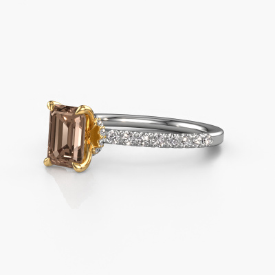 Der oben gezeigte Weißgold Verlobungsring wird Crystal EME 4 genannt. Es ist ein Pavé Solitär Ring, da er einen zentralen Edelstein und ein Band mit Pavé-Fassung hat. Der modische Pavé Solitär Verlobungsring ist in der Kombination 14 Karat Weißgold mit Gold und ist mit einem smaragd schliff 1.15 crt Braun Diamant-Mittelstein besetzt und das Band hat eine Pavé-Fassung mit Lab grown Diamant. Jedes Schmuckstück ist um Ihrem Finger Glanz zu verleihen. Jeder Ring wird von unseren Goldschmieden liebevoll von Hand gefertigt. Um den zentralen Stein noch mehr zu betonen, hat das Band eine Pavé-Fassung mit weiteren Braun Diamant. Durch die offenen Krappen kann das Licht aus mehreren Winkeln auf den Braun Diamant treffen und der Braun Diamant-Ring funkelt noch mehr. Das obere Foto zeigt die leidenschaftlich handgefertigten Details des Rings. Die hohe Positionierung der Mittelstein ist ein echter Blickfang. Der perfekte Verlobungsring für das Kronjuwel Ihres Lebens!Nach Erhalt Ihrer Bestellung beginnen unsere Goldschmiede mit Leidenschaft den kreativen Prozess und fertigen Ihren Verlobungsring in unserem eigenen Studio. Da wir keine großen Lager haben, werden diese Kosten nicht an Sie weitergegeben. Unsere Preisgestaltung ist der Beweis dafür! Wir bieten Schmuck zum niedrigsten Preis, garantiert.Unser Team fügt unserer Online-Kollektion täglich neue Designs hinzu. Unsere Designer und Goldschmiede arbeiten zusammen, um das beste Design zu kreieren. Wir bemühen uns, eine vielfältige Kollektion von Schmuckstücken anzubieten. Vielleicht haben Sie ein bestimmtes Design im Sinn. Eines, dass Sie irgendwo gesehen haben. Gerne geben wir Ihnen eine kostenlose Beratung. Wir machen Ihnen ein Angebot, basierend auf einem fairen Preis/Leistungsverhältnis, das Sie verblüffen wird.Um es einfacher zu machen, bieten wir eine kostenlose 30-tägige Rücksendung.