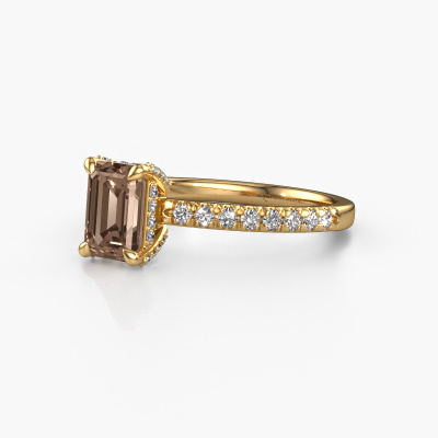 Der oben gezeigte Verlobungsring wird Saskia eme 1 genannt. Wir nennen das einen Solitär-Ring, denn er hat einen einzelnen Edelstein. Es ist ein 14 Karat Gold ring, mit 1.15 crt smaragd schliff Braun Diamant. Das Besondere an unserem Konfigurator ist dass Sie selbst einem Schmuckstück zusammenstellen können zu einem eigenen persönlichen Schmuckstück. Dieser Solitäre Verlobungsring ist gefertigt in der Edelmetall Kombination Gold mit Gold, aber Sie können also auch wählen aus anderen Farben. Jedes Schmuckstück wird hergestellt mit Leidenschaft und Liebe, von einem unserer Meister-Goldschmiede. Der Solitär-Verlobungsring ist eine Sonderform des Verlobungsring. Seine offenen Krappen ermöglichen, dass Licht aus mehr Winkeln auf den Edelstein trifft. Dieser exklusive Verlobungsring ist durch die hohe Positionierung des Edelsteins ein atemberaubender Blickfang. Wir schmücken diesen Solitär-Ring sorgfältig von Hand, damit Sie Ihren Anfrage mit einem einzigartigen Ring würdigen können. Die Liebe Ihres Lebens verdient nur das Beste. Nach Erhalt Ihrer Bestellung beginnen unsere Goldschmiede mit Leidenschaft den kreativen Prozess und fertigen Ihren Verlobungsring in unserem eigenen Studio. Da wir keine großen Lager haben, werden diese Kosten nicht an Sie weitergegeben. Unsere Preisgestaltung ist der Beweis dafür! Wir bieten Schmuck zum niedrigsten Preis, garantiert.Unser Team fügt unserer Online-Kollektion täglich neue Designs hinzu. Unsere Designer und Goldschmiede arbeiten zusammen, um das beste Design zu kreieren. Wir bemühen uns, eine vielfältige Kollektion von Schmuckstücken anzubieten. Vielleicht haben Sie ein bestimmtes Design im Sinn. Eines, dass Sie irgendwo gesehen haben. Gerne geben wir Ihnen eine kostenlose Beratung. Wir machen Ihnen ein Angebot, basierend auf einem fairen Preis/Leistungsverhältnis, das Sie verblüffen wird.Um es einfacher zu machen, bieten wir eine kostenlose 30-tägige Rücksendung.