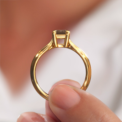 Der oben gezeigte Verlobungsring wird Antonia eme 1 genannt. Wir nennen das einen Solitär-Ring, denn er hat einen einzelnen Edelstein. Es ist ein 14 Karat Gold ring, mit 1.15 crt smaragd schliff Braun Diamant. Das Besondere an unserem Konfigurator ist dass Sie selbst einem Schmuckstück zusammenstellen können zu einem eigenen persönlichen Schmuckstück. Dieser Solitäre Verlobungsring ist gefertigt in der Edelmetall Kombination Gold mit Gold, aber Sie können also auch wählen aus anderen Farben. Jedes Schmuckstück ist um Ihrem Finger Glanz zu verleihen. Jeder Ring wird von unseren Goldschmieden liebevoll von Hand gefertigt. Der Solitär-Verlobungsring ist eine Sonderform des Verlobungsring. Seine offenen Krappen ermöglichen, dass Licht aus mehr Winkeln auf den Edelstein trifft. Dieser Fantasie Verlobungsring ist durch die hohe Positionierung des Edelsteins ein atemberaubender Blickfang. Wir schmücken diesen Solitär-Ring sorgfältig von Hand, damit Sie Ihren Anfrage mit einem einzigartigen Ring würdigen können. Die Liebe Ihres Lebens verdient nur das Beste. Da wir unsere eigenen Ringe entwerfen und liefern, können wir Ihnen einen Verlobungsring zu einem Preis anbieten, den Sie nirgendwo anders finden. Ein Ring wird auf Bestellung angefertigt, wodurch kein überschüssiges Material anfällt. So können wir Ihnen ein gutes Angebot zum besten Preis machen. Wir verstehen, dass es sich riskant anfühlt, Ihren Verlobungsring online zu kaufen. Jedoch helfen wir Ihnen gerne beim Designprozess unter Berücksichtigung Ihres Budgets.Unsere Designer und Goldschmiede arbeiten jeden Tag zusammen und versuchen, neue Schmuckstücke zu kreieren. Vielleicht haben Sie irgendwo einen schönen, Fantasie Verlobungsring gefunden, nach dem Ihr einzigartiger Ring gestaltet werden kann. Setzen Sie sich mit uns in Verbindung. Wir machen Ihnen ein Angebot, basierend auf einem fairen Preis/Leistungsverhältnis, das Sie begeistern wird.Um es einfacher zu machen, bieten wir eine kostenlose 30-tägige Rücksendung.