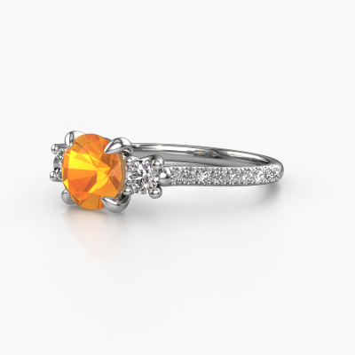 Dieser Verlobungsring aus Platin mit 6.8 mm Citrin heißt Jesica. Was macht Ihre Beziehung einzigartig? Was hat sie an sich, was Sie dazu bringt, auf die Knie zu fallen? Die einzigartige Verbindung zwischen Ihnen beiden wird durch einen ebenso einzigartigen Ring unterstrichen. Ein einzigartiger 3-stone Verlobungsring, der nur für sie gemacht wurde. Deshalb passt dieser Ring wie angegossen. Jedes einzelne Detail dieses graziöse, Platin Citrin Verlobungsring wird von unserem erfahrenen Goldschmieden in unserem eigenen Studio von Hand ausgesucht, bearbeitet und poliert. Das Endprodukt ist ein exquisiter Ring, einzigartig und bis zur Perfektion gebracht. Danach streben unsere erfahrenen Juweliere. Jedes Schmuckstück wird nur für Sie persönlich hergestellt, mit Liebe zum Detail und Design.Nach Erhalt Ihrer Bestellung beginnen unsere Goldschmiede mit Leidenschaft den kreativen Prozess und fertigen Ihren Verlobungsring in unserem eigenen Studio. Da wir keine großen Lager haben, werden diese Kosten nicht an Sie weitergegeben. Unsere Preisgestaltung ist der Beweis dafür! Wir bieten Schmuck zum niedrigsten Preis, garantiert.Verschiedene Arten von neuen Ringen werden täglich von unserem Team angefertigt. Vielleicht haben Sie irgendwo einen 3-stone Verlobungsring gefunden. Einen, den Sie Ihrem Liebsten schenken möchten. Bitte zögern Sie nicht, unseren Schmuckdesignern Ihre Gedanken und Ihr Design zu zeigen. Wir würden gerne Ihr Design in einen klassische Verlobungsring verwandeln. Sie können die Entwicklungen Ihres Ringdesigns verfolgen, da wir sehr detaillierte 3D-Zeichnungen verwenden. Darüber hinaus können Sie einen Dummy des Designs bestellen. Ein Dummy ist ein Kunststoffring, der nach Ihrem Ringdesign gestaltet werden kann. Sie können ihn anprobieren und prüfen, ob der Verlobungsring Ihren Vorstellungen entspricht. Wir senden Ihnen gerne ein unverbindliches Angebot zu einem fairen Preis/Leistungsverhältnis. Das Angebot wird Sie angesichts der Qualität des Rings und der Edelsteine verblüffen.Um es einfacher zu machen, bieten wir eine kostenlose 30-tägige Rücksendung.