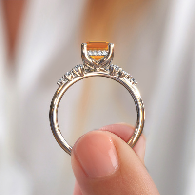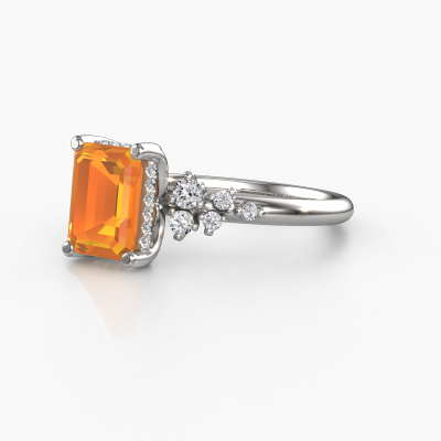 Der oben gezeigte Ring wird Emma EME genannt. Es ist ein Pavé Solitär Ring, da er einen zentralen Edelstein und ein Band mit Pavé-Fassung hat. Dieser Platin ring ist mit einem 8x6 mm smaragd schliff Citrin-Mittelstein besetzt und das Band hat eine Pavé-Fassung mit Lab grown Diamant. Jedes Schmuckstück wird hergestellt mit Leidenschaft und Liebe, von einem unserer Meister-Goldschmiede.Dieser Fantasie Platin Pavé Solitär Verlobungsring mit Pavé-Fassung hat einen exquisiten, smaragd schliff Citrin als Mittelstein. Um den zentralen Stein noch mehr zu betonen, hat das Band eine Pavé-Fassung mit weiteren Lab grown Diamant. Durch die offenen Krappen kann das Licht aus mehreren Winkeln auf den Citrin treffen und der Citrin-Ring funkelt noch mehr. Das obere Foto zeigt die leidenschaftlich handgefertigten Details des Rings. Die hohe Positionierung der Mittelstein ist ein echter Blickfang. Der perfekte Verlobungsring für das Kronjuwel Ihres Lebens!Nach Erhalt Ihrer Bestellung beginnen unsere Goldschmiede mit Leidenschaft den kreativen Prozess und fertigen Ihren Verlobungsring in unserem eigenen Studio. Da wir keine großen Lager haben, werden diese Kosten nicht an Sie weitergegeben. Unsere Preisgestaltung ist der Beweis dafür! Wir bieten Schmuck zum niedrigsten Preis, garantiert.Unser Team fügt unserer Online-Kollektion täglich neue Designs hinzu. Unsere Designer und Goldschmiede arbeiten zusammen, um das beste Design zu kreieren. Wir bemühen uns, eine vielfältige Kollektion von Schmuckstücken anzubieten. Vielleicht haben Sie ein bestimmtes Design im Sinn. Eines, dass Sie irgendwo gesehen haben. Gerne geben wir Ihnen eine kostenlose Beratung. Wir machen Ihnen ein Angebot, basierend auf einem fairen Preis/Leistungsverhältnis, das Sie verblüffen wird.Um es einfacher zu machen, bieten wir eine kostenlose 30-tägige Rücksendung.