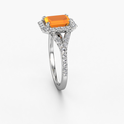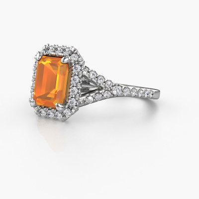 Der oben gezeigte Platin Verlobungsring wird Kimber EME genannt. Es ist ein Pavé Solitär Ring, da er einen zentralen Edelstein und ein Band mit Pavé-Fassung hat. Der exklusive Pavé Solitär Verlobungsring ist in der Kombination Platin mit Platin und ist mit einem smaragd schliff 8x6 mm Citrin-Mittelstein besetzt und das Band hat eine Pavé-Fassung mit Lab grown Diamant. Jedes Schmuckstück wird hergestellt von einem Team leidenschaftlicher Goldschmiede und Schmuckdesigner. Das wird Ihr Kronjuwel unbedingt zu einem Blickfang machen. Um den zentralen Stein noch mehr zu betonen, hat das Band eine Pavé-Fassung mit weiteren Citrin. Durch die offenen Krappen kann das Licht aus mehreren Winkeln auf den Citrin treffen und der Citrin-Ring funkelt noch mehr. Das obere Foto zeigt die leidenschaftlich handgefertigten Details des Rings. Die hohe Positionierung der Mittelstein ist ein echter Blickfang. Der perfekte Verlobungsring für das Kronjuwel Ihres Lebens!Durch die Kombination modernster Technik mit uralter Handwerkskunst können wir alle Verlobungsringe in unserem eigenen Studio anfertigen. Jedes Schmuckstück wird auf Anfrage gefertigt. Das ist vorteilhaft, weil wir Ihnen dadurch einen Preis anbieten können, den Sie nirgendwo anders finden.Unser Team fügt unserer Online-Kollektion täglich neue Designs hinzu. Unsere Designer und Goldschmiede arbeiten zusammen, um das beste Design zu kreieren. Wir bemühen uns, eine vielfältige Kollektion von Schmuckstücken anzubieten. Vielleicht haben Sie ein bestimmtes Design im Sinn. Eines, dass Sie irgendwo gesehen haben. Gerne geben wir Ihnen eine kostenlose Beratung. Wir machen Ihnen ein Angebot, basierend auf einem fairen Preis/Leistungsverhältnis, das Sie verblüffen wird.Um es einfacher zu machen, bieten wir eine kostenlose 30-tägige Rücksendung.