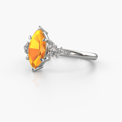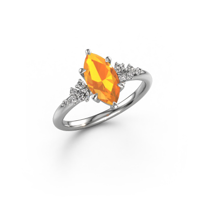 Der oben gezeigte Ring wird Royce MRQ genannt. Es ist ein Pavé Solitär Ring, da er einen zentralen Edelstein und ein Band mit Pavé-Fassung hat. Dieser Platin ring ist mit einem 11x5.5 mm marquise Citrin-Mittelstein besetzt und das Band hat eine