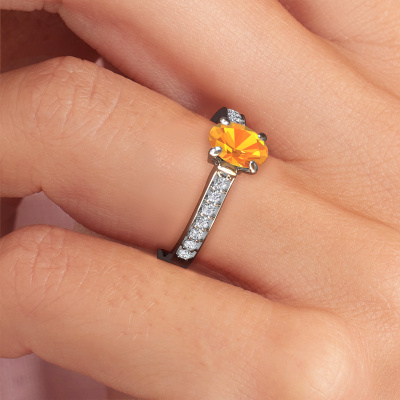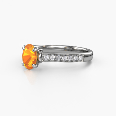 Der oben gezeigte Ring wird Valorie ovl 2 genannt. Es ist ein Pavé Solitär Ring, da er einen zentralen Edelstein und ein Band mit Pavé-Fassung hat. Dieser Platin ring ist mit einem 7x5 mm oval Citrin-Mittelstein besetzt und das Band hat eine Pavé-Fassung mit Lab grown Diamant. Jedes Schmuckstück wird hergestellt mit Leidenschaft und Liebe, von einem unserer Meister-Goldschmiede.Dieser modische Platin Pavé Solitär Verlobungsring mit Pavé-Fassung hat einen exquisiten, oval Citrin als Mittelstein. Um den zentralen Stein noch mehr zu betonen, hat das Band eine Pavé-Fassung mit weiteren Lab grown Diamant. Durch die offenen Krappen kann das Licht aus mehreren Winkeln auf den Citrin treffen und der Citrin-Ring funkelt noch mehr. Das obere Foto zeigt die leidenschaftlich handgefertigten Details des Rings. Die hohe Positionierung der Mittelstein ist ein echter Blickfang. Der perfekte Verlobungsring für das Kronjuwel Ihres Lebens!Haben Sie ein bestimmtes Budget? Sie können uns gerne kontaktieren, damit wir Ihre Optionen besprechen können. Wir bieten unsere Verlobungsringe zum garantiert besten Preis, denn wir fertigen sie auf Bestellung. Solche Preise finden Sie nirgendwo anders!Unser Team fügt unserer Online-Kollektion täglich neue Designs hinzu. Unsere Designer und Goldschmiede arbeiten zusammen, um das beste Design zu kreieren. Wir bemühen uns, eine vielfältige Kollektion von Schmuckstücken anzubieten. Vielleicht haben Sie ein bestimmtes Design im Sinn. Eines, dass Sie irgendwo gesehen haben. Gerne geben wir Ihnen eine kostenlose Beratung. Wir machen Ihnen ein Angebot, basierend auf einem fairen Preis/Leistungsverhältnis, das Sie verblüffen wird.Um es einfacher zu machen, bieten wir eine kostenlose 30-tägige Rücksendung.