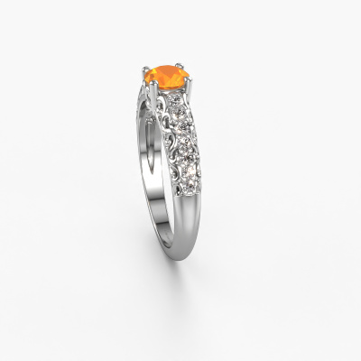 Dieser Verlobungsring aus Platin mit 5 mm Citrin heißt Mellie. Was macht Ihre Beziehung einzigartig? Was hat sie an sich, was Sie dazu bringt, auf die Knie zu fallen? Die einzigartige Verbindung zwischen Ihnen beiden wird durch einen ebenso einzigartigen Ring unterstrichen. Ein einzigartiger Pavé Solitär Verlobungsring, der nur für sie gemacht wurde. Deshalb passt dieser Ring wie angegossen. Jedes einzelne Detail dieses Filigrane, Platin Citrin Verlobungsring wird von unserem erfahrenen Goldschmieden in unserem eigenen Studio von Hand ausgesucht, bearbeitet und poliert. Das Endprodukt ist ein exquisiter Ring, einzigartig und bis zur Perfektion gebracht. Danach streben unsere erfahrenen Juweliere. Jedes Schmuckstück wird hergestellt von einem Team leidenschaftlicher Goldschmiede und Schmuckdesigner. Das wird Ihr Kronjuwel unbedingt zu einem Blickfang machen.Haben Sie ein bestimmtes Budget? Sie können uns gerne kontaktieren, damit wir Ihre Optionen besprechen können. Wir bieten unsere Verlobungsringe zum garantiert besten Preis, denn wir fertigen sie auf Bestellung. Solche Preise finden Sie nirgendwo anders!Haben Sie irgendwo einen bestimmten Verlobungsring gefunden, den Sie Ihrem Liebsten schenken möchten? Sie können uns gerne sagen, was Sie wollen und wir werden Ihr Design in einen Einzigartigen Vintage Verlobungsring verwandeln. Sie können die Entwicklungen Ihres Ringdesigns verfolgen, da wir 3D-Zeichnungen verwenden. Das gibt Ihnen eine realistische Vorschau, wie Ihr Design aussehen wird. Sie können auch einen Dummy vorbestellen. Ein Dummy ist ein Kunststoffring, der nach Ihrem Ringdesign gestaltet werden kann. Sie können ihn anprobieren und prüfen, ob seine Breite und Größe für Sie geeignet sind. Wir senden Ihnen gerne ein unverbindliches Angebot zu einem fairen Preis/Leistungsverhältnis. Sie werden in Anbetracht der Qualität des Rings und der Edelsteine überrascht sein.Um es einfacher zu machen, bieten wir eine kostenlose 30-tägige Rücksendung.