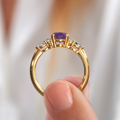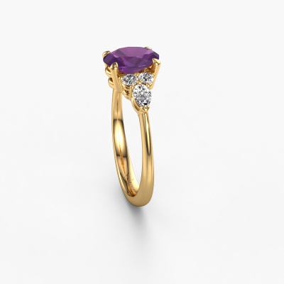 Dieser Ring aus 14 Karat Gold heißt Melani OVL und hat 8x6 mm Amethyst. Dieser elegante 14 Karat Gold Cluster Verlobungsring ist ein wahres Kunstwerk! Die Ornamente werden mit viel Geduld und großer Leidenschaft gefertigt. Um diesen Ring mit großer Präzision zu schaffen, erfordert dieses Handwerk ein scharfes Auge und eine geschickte Hand. Eine Herausforderung, die bei unseren erfahrenen Juwelieren ein Feuer entfacht. Die exquisiten Amethysten sind auf eine besondere Art und Weise gefasst, so dass sie noch mehr hervorstechen. Dies verleiht dem Ring eine noch glamourösere Erscheinung. Der Ring an sich ist schon wegen der Edelsteine einzigartig, die wir speziell für diesen Ring auswählen. Obendrein wählen Sie die Edelmetalle aus, mit denen Ihr einzigartiger Ring für die außergewöhnlichste Frau Ihres Lebens gemacht wird! Jedes Schmuckstück wird hergestellt von einem Team leidenschaftlicher Goldschmiede und Schmuckdesigner. Das wird Ihr Kronjuwel unbedingt zu einem Blickfang machen.Durch die Kombination modernster Technik mit uralter Handwerkskunst können wir alle Verlobungsringe in unserem eigenen Studio anfertigen. Jedes Schmuckstück wird auf Anfrage gefertigt. Das ist vorteilhaft, weil wir Ihnen dadurch einen Preis anbieten können, den Sie nirgendwo anders finden.Unsere Designer und Goldschmiede arbeiten jeden Tag zusammen und versuchen, neue Schmuckstücke zu kreieren. Vielleicht haben Sie irgendwo einen schönen, modische Verlobungsring gefunden, nach dem Ihr einzigartiger Ring gestaltet werden kann. Setzen Sie sich mit uns in Verbindung. Wir machen Ihnen ein Angebot, basierend auf einem fairen Preis/Leistungsverhältnis, das Sie begeistern wird.Um es einfacher zu machen, bieten wir eine kostenlose 30-tägige Rücksendung.