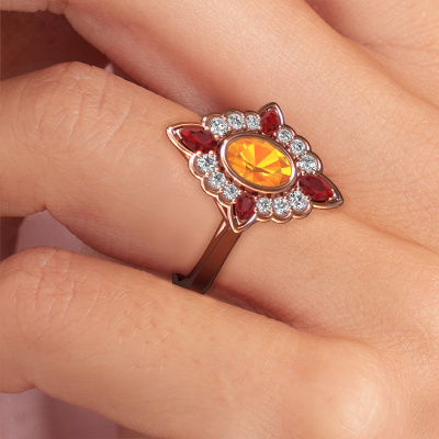 Dieser Verlobungsring aus 14 Karat Roségold heißt Door und hat einen 7x5 mm Citrin. Ein außergewöhnlicher, Roségold Vintage Ring. Einer, der die Liebe Ihres Lebens mit Sicherheit wie ein Citrin erstrahlen lässt! Das hoffen wir zu erreichen. Dieser Vintage Verlobungsring ist mit exquisiten Citrin besetzt. Welchen Edelstein Sie aus unserer Auswahl haben möchten, liegt ganz bei Ihnen. Der Edelstein wird mit großer Sorgfalt ausgewählt. Denn wir glauben, dass Ihr gewagte Verlobungsring nur mit dem schönsten Edelstein gekrönt sein darf. Sehen Sie das auch so? Unser erfahrener Juwelier entwirft Ihren Ring in unserem eigenen Studio, wo der Citrin mit großer Präzision eingefasst wird. Der Ring wird dann bearbeitet und poliert, bis er perfekt ist. Nichts als das Beste für die Liebe Ihres Lebens! Jedes Schmuckstück wird von unseren Meister-Goldschmieden in unserem eigenen Studio für Sie gefertigt.Nach Erhalt Ihrer Bestellung beginnen unsere Goldschmiede mit Leidenschaft den kreativen Prozess und fertigen Ihren Verlobungsring in unserem eigenen Studio. Da wir keine großen Lager haben, werden diese Kosten nicht an Sie weitergegeben. Unsere Preisgestaltung ist der Beweis dafür! Wir bieten Schmuck zum niedrigsten Preis, garantiert.Unser Team fügt unserer Online-Kollektion täglich neue Designs hinzu. Unsere Designer und Goldschmiede arbeiten zusammen, um das beste Design zu kreieren. Wir bemühen uns, eine vielfältige Kollektion von Schmuckstücken anzubieten. Vielleicht haben Sie ein bestimmtes Design im Sinn. Eines, dass Sie irgendwo gesehen haben. Gerne geben wir Ihnen eine kostenlose Beratung. Wir machen Ihnen ein Angebot, basierend auf einem fairen Preis/Leistungsverhältnis, das Sie verblüffen wird.Um es einfacher zu machen, bieten wir eine kostenlose 30-tägige Rücksendung.